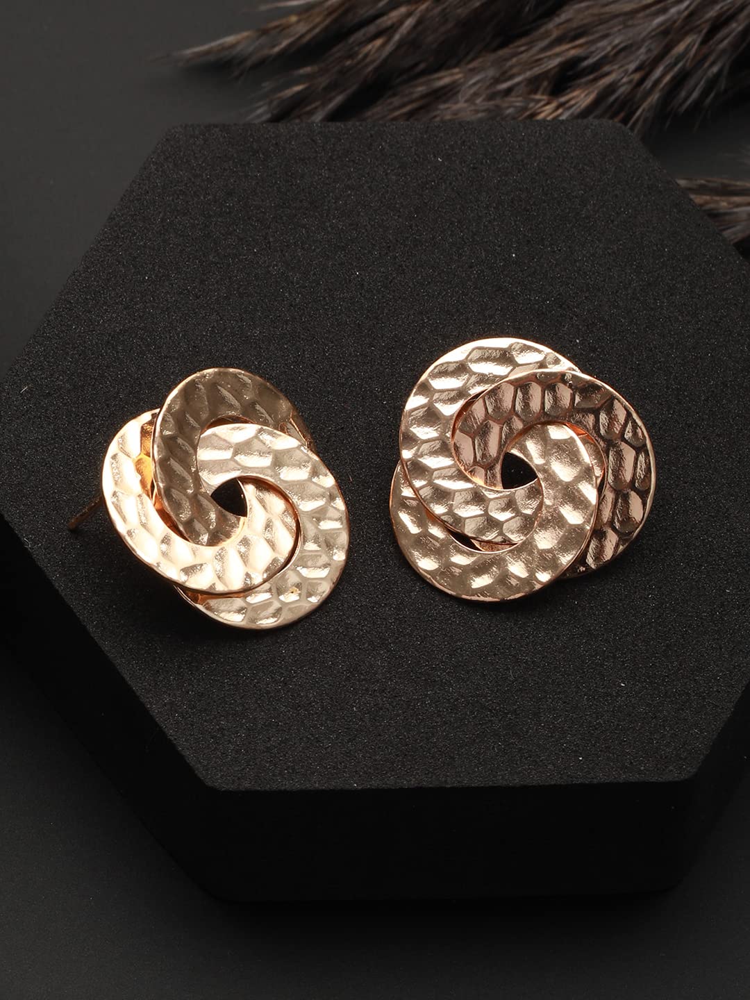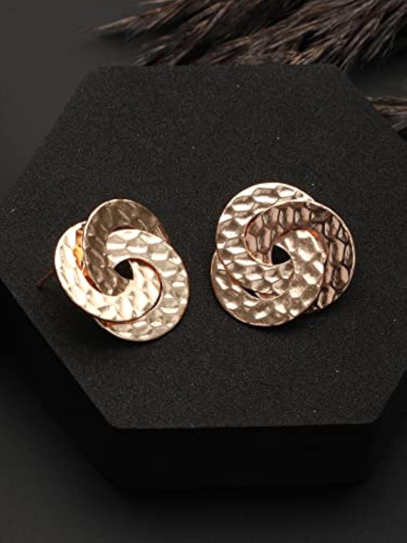 Add a touch of elegance with these plated stud earrings featuring textured tri-rings design.