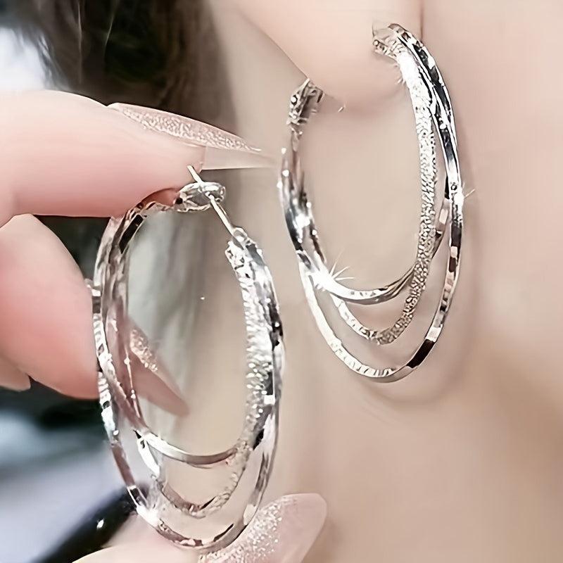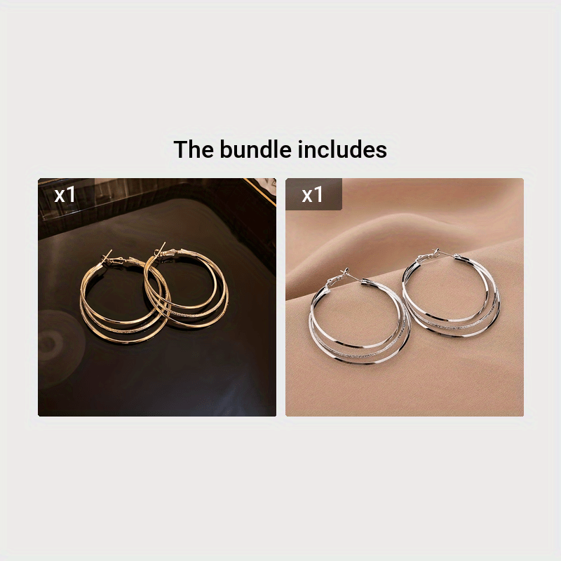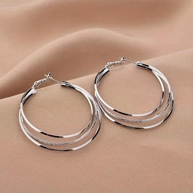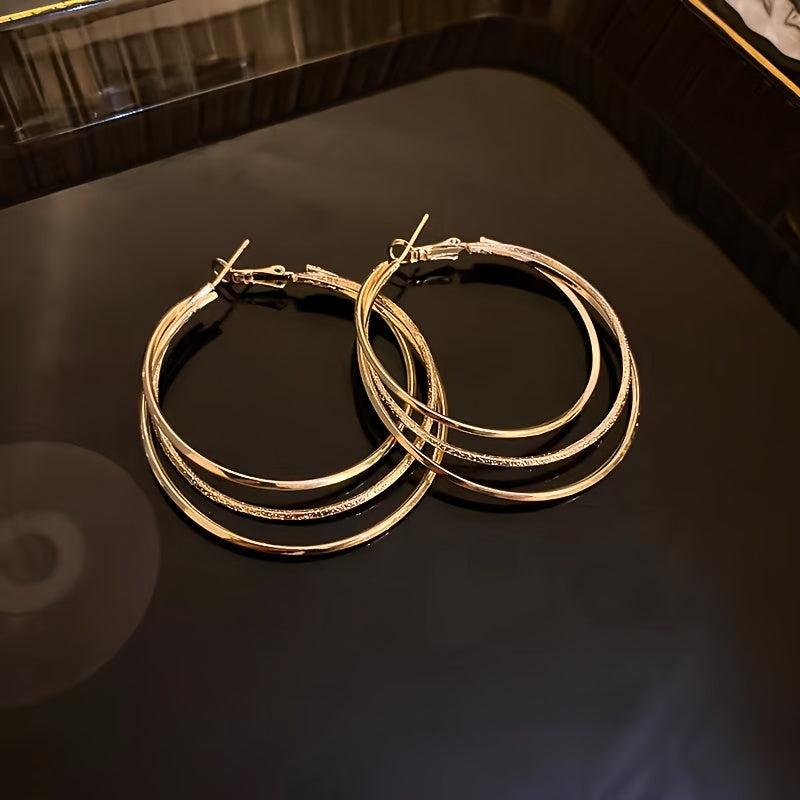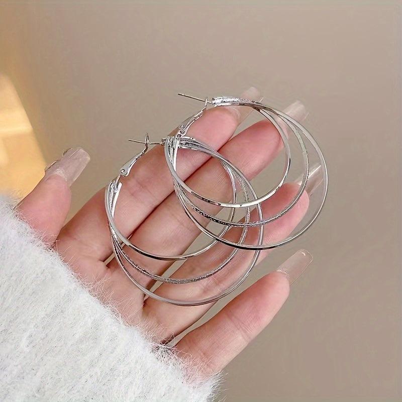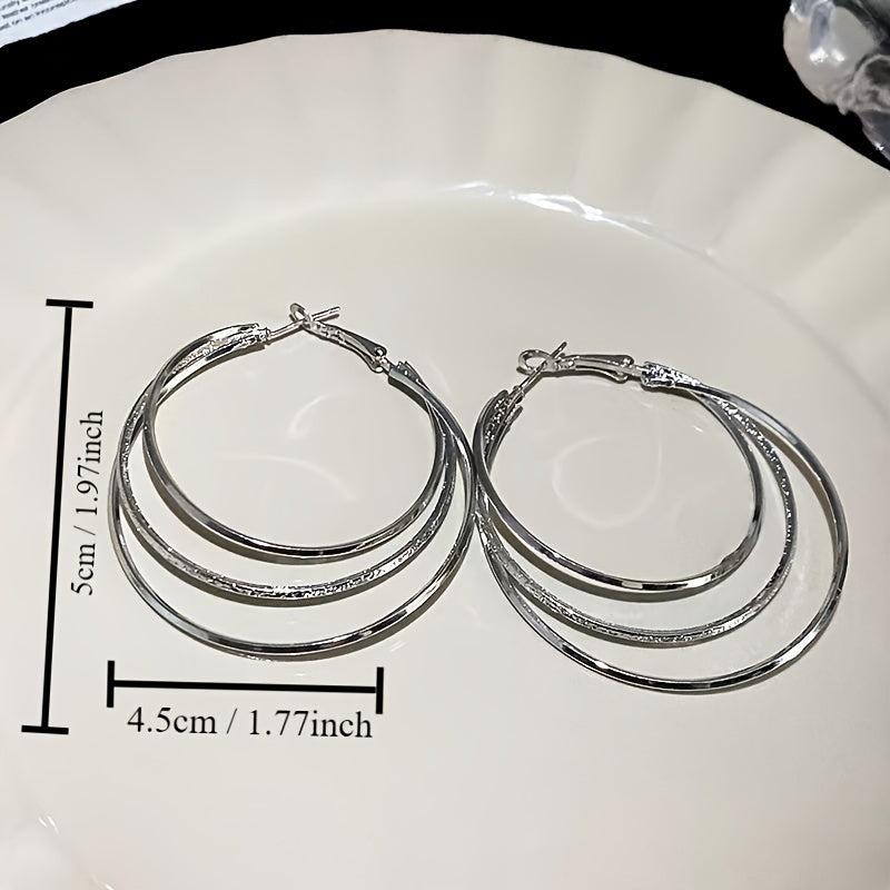 Add a touch of glamour to your outfit with these stylish earrings. The three-layer design and plain circle ear studs make them a perfect accessory for any occasion.