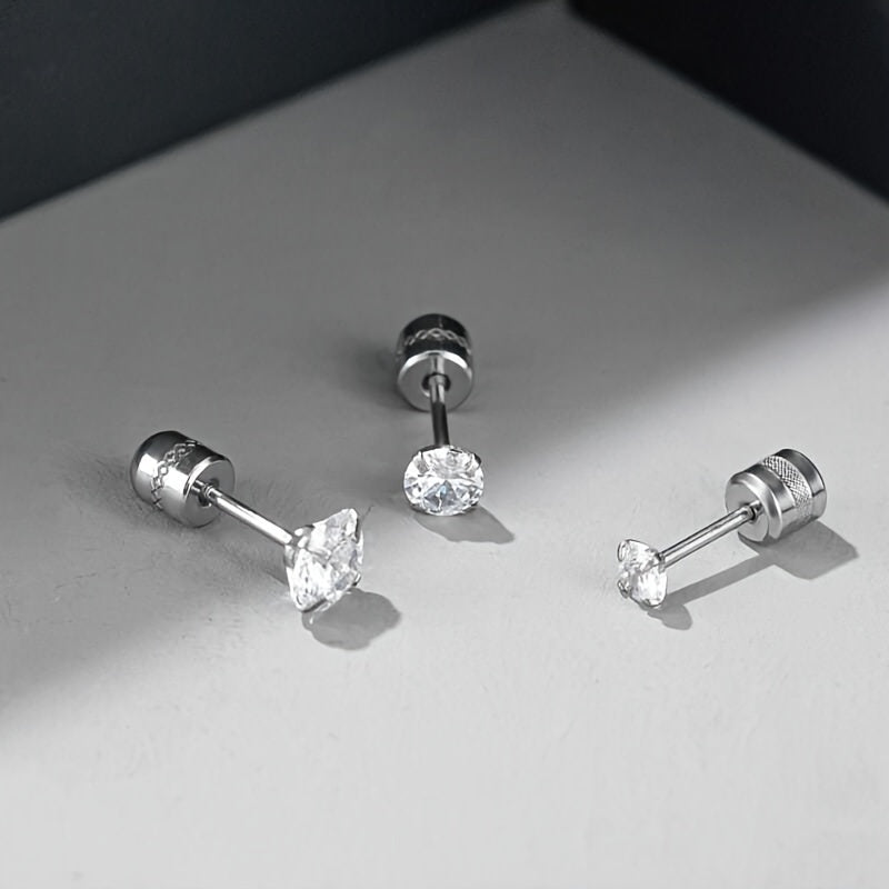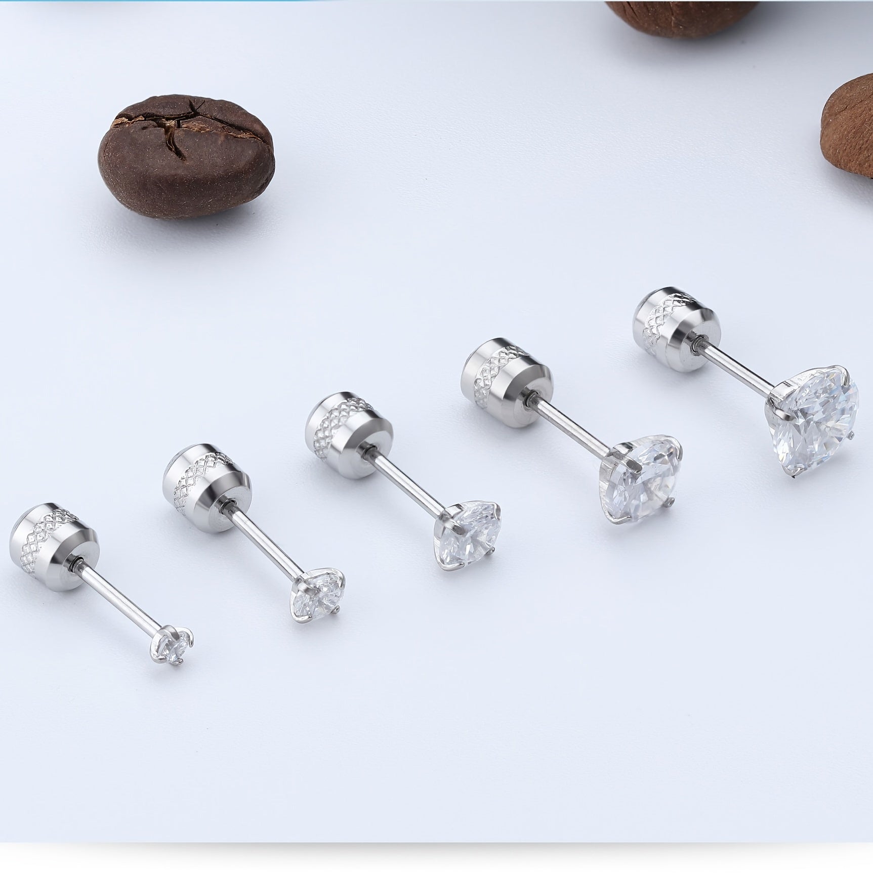 These stylish stud earrings are made of titanium stainless steel and feature zircon accents. Suitable for both men and women, they are a perfect accessory for any outfit.