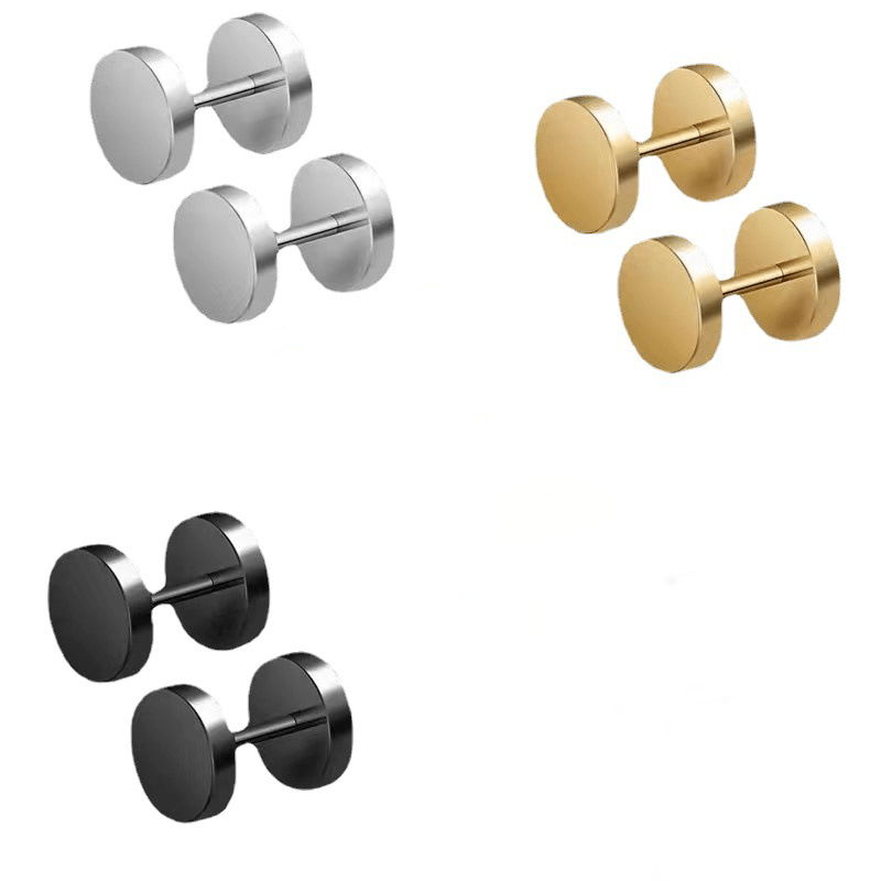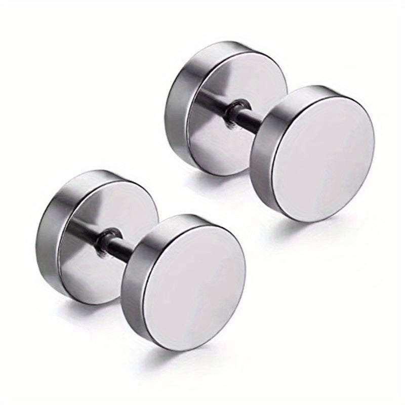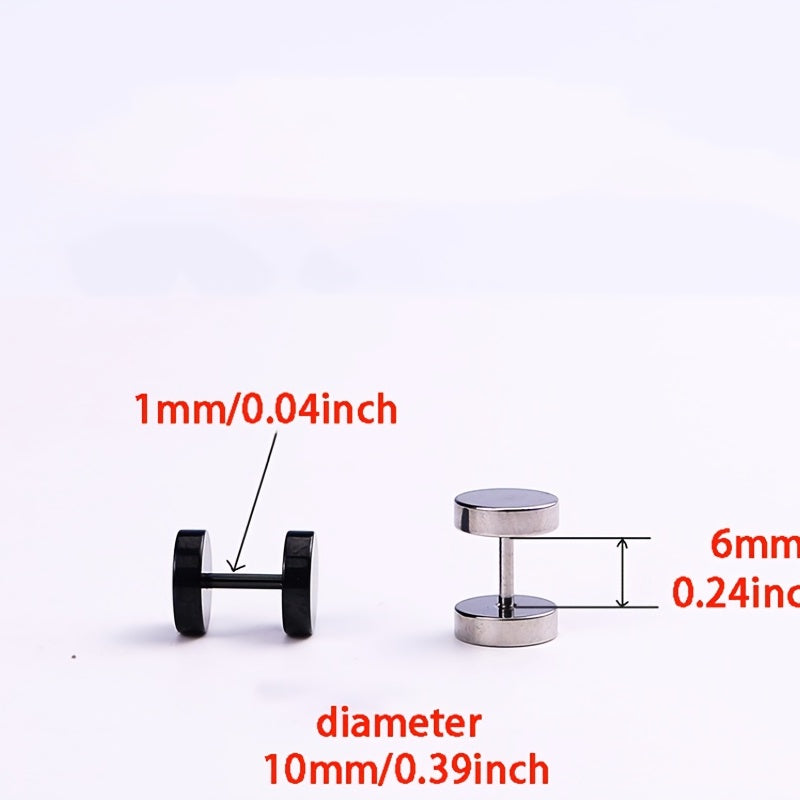 Add a pop of edgy style with these round dumbbell stud earrings made of titanium steel. Perfect for a hip hop or rock-inspired look.