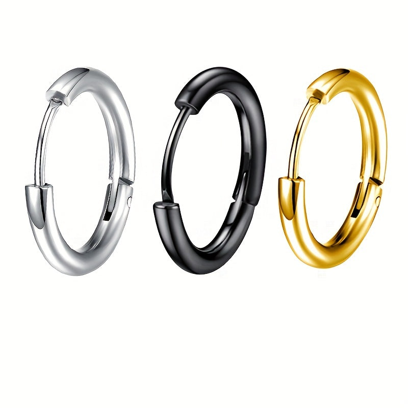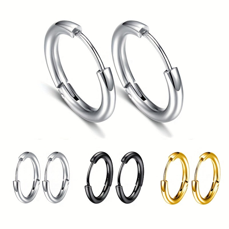 Get a pair of stylish coil earrings suitable for both men and women. Made from titanium steel, these earrings are available in sizes 8mm, 10mm, 12mm, 14mm, and 16mm.