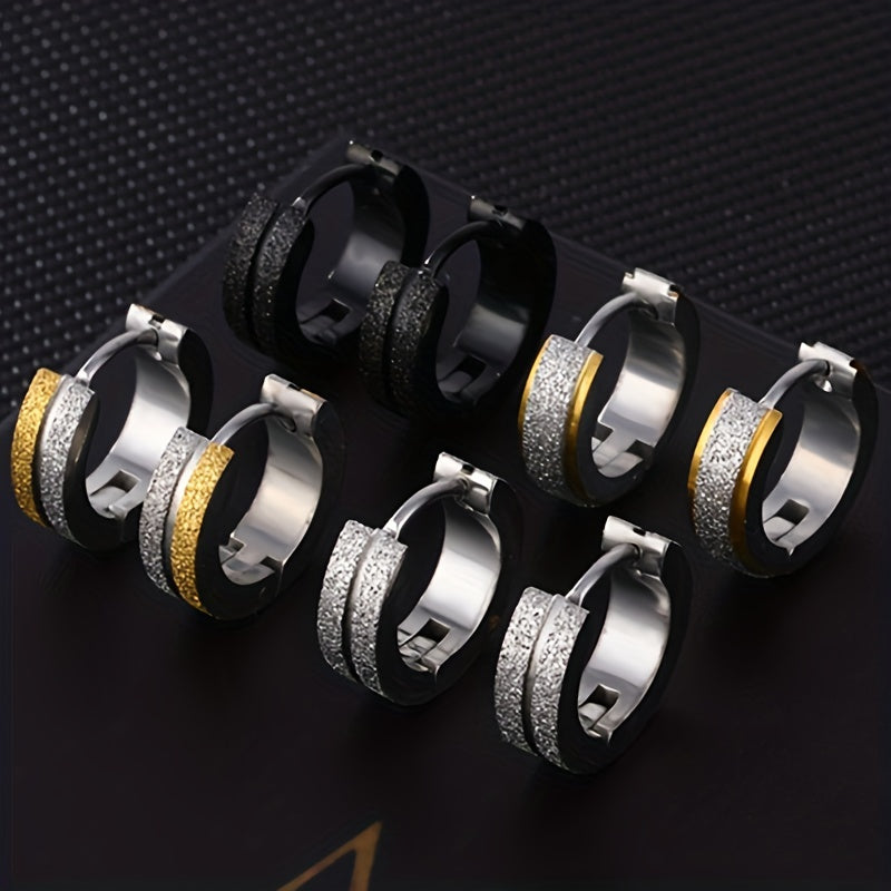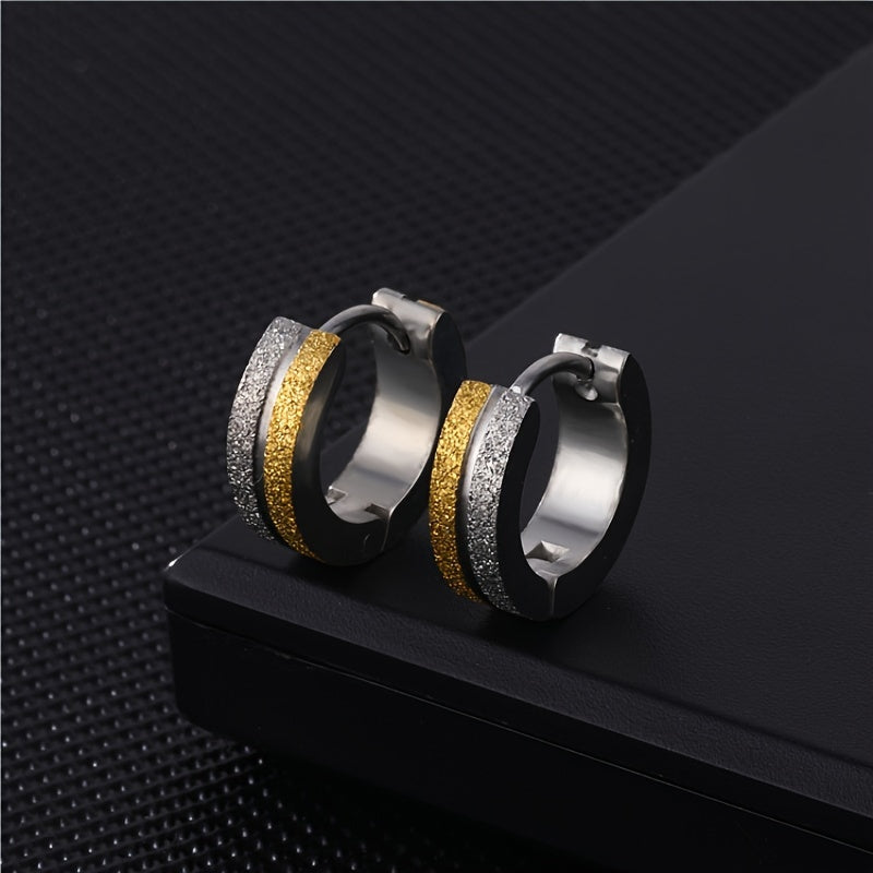 Enhance your street style with these hip hop punk earrings. Crafted from titanium steel, these ear buckles feature a frosted design with a golden plated finish.
