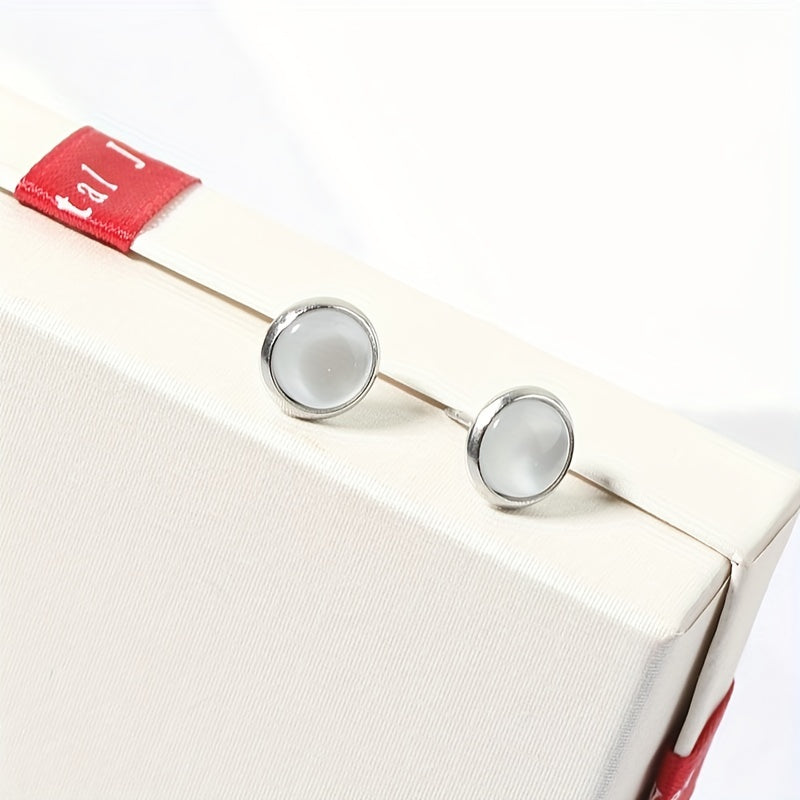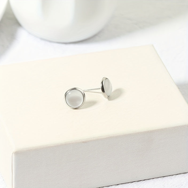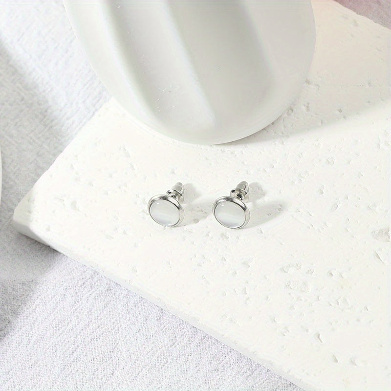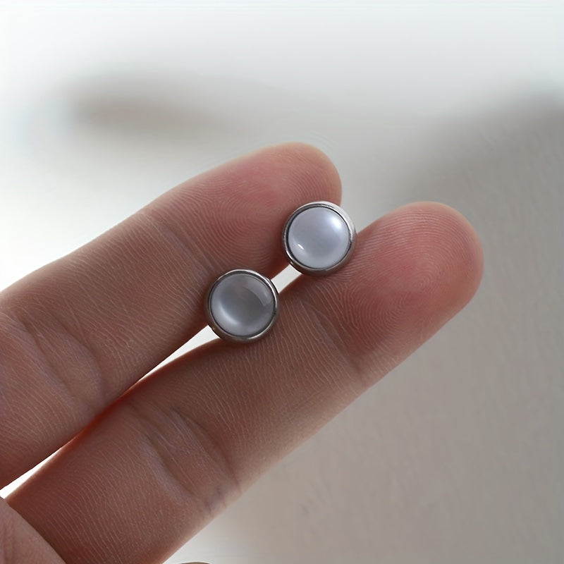 These stylish round stud earrings are made of high-quality titanium steel and are perfect for everyday wear.