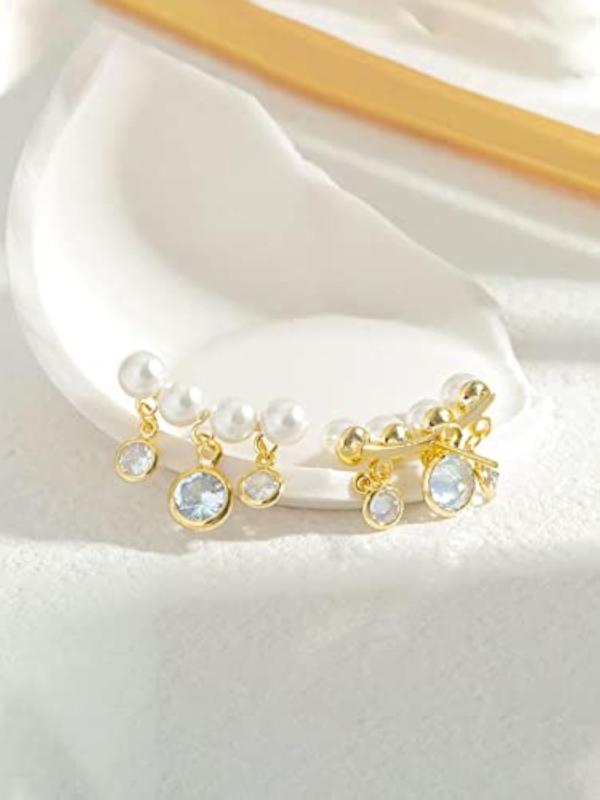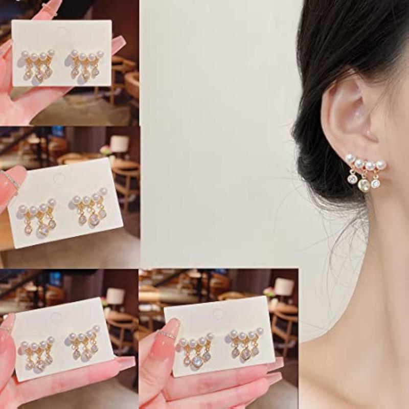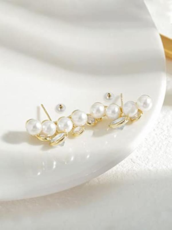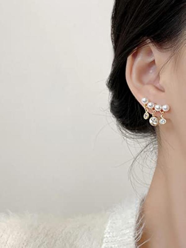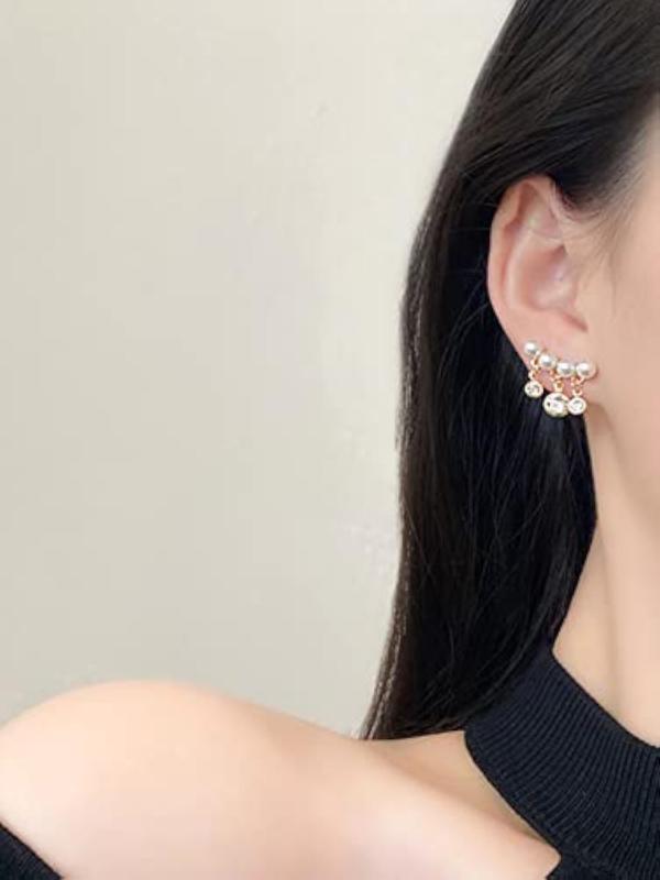 Elegant and charming earrings featuring a mix of pearls and crystal beads. Perfect for adding a touch of sparkle to any outfit.