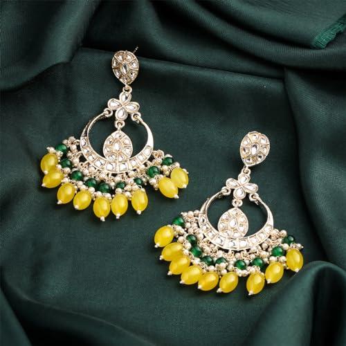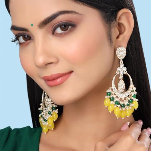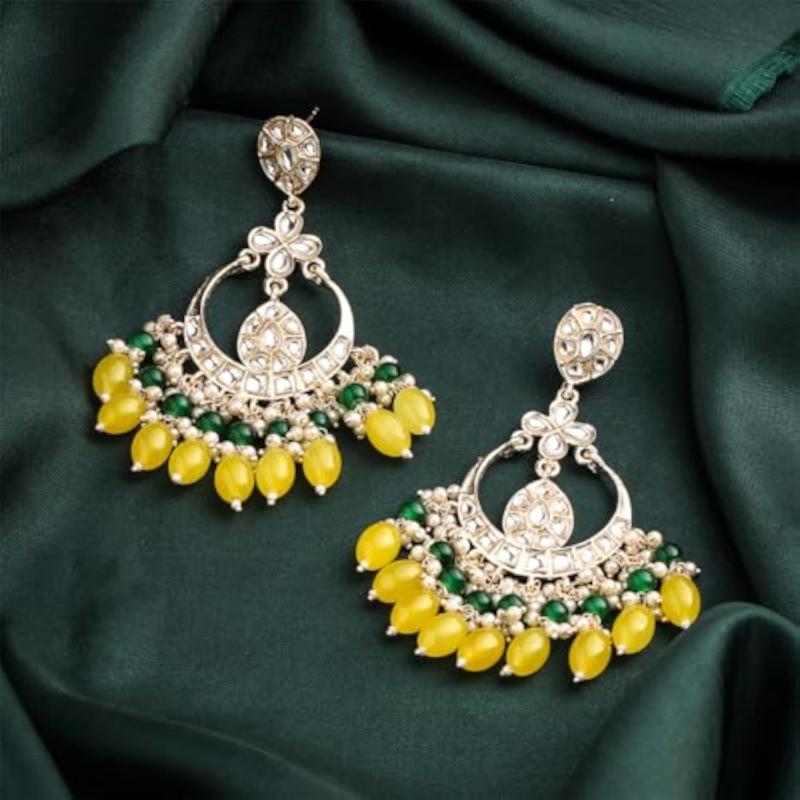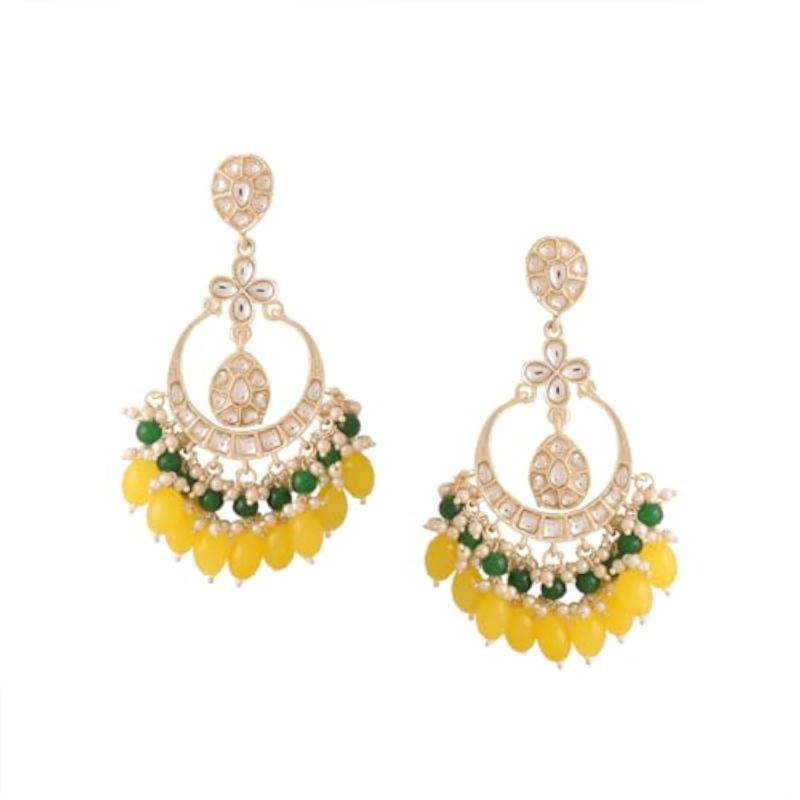 Beautiful chandbali earrings featuring toned kundan studs and pink beads drop design.