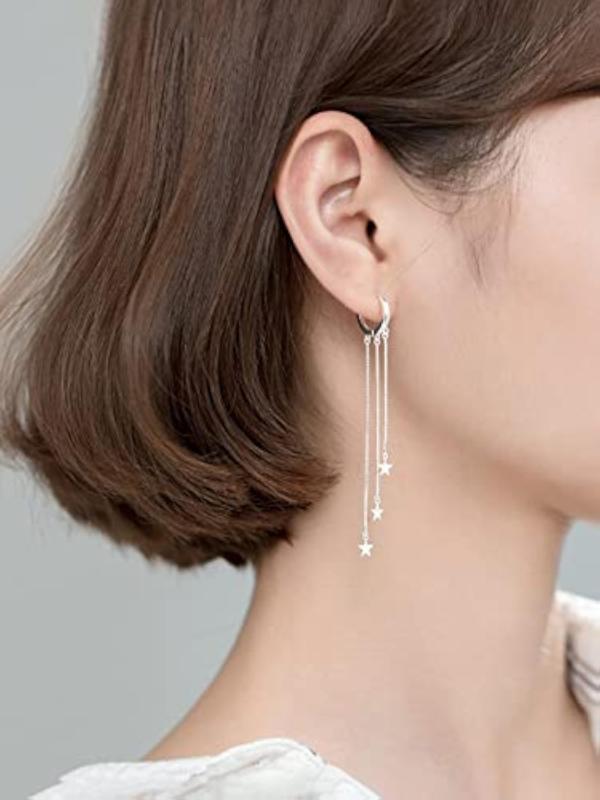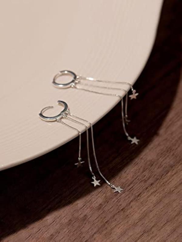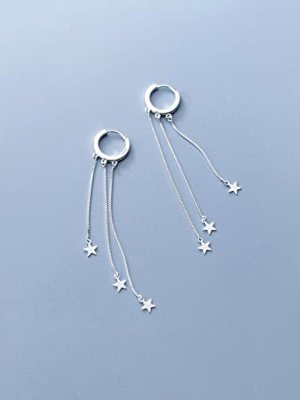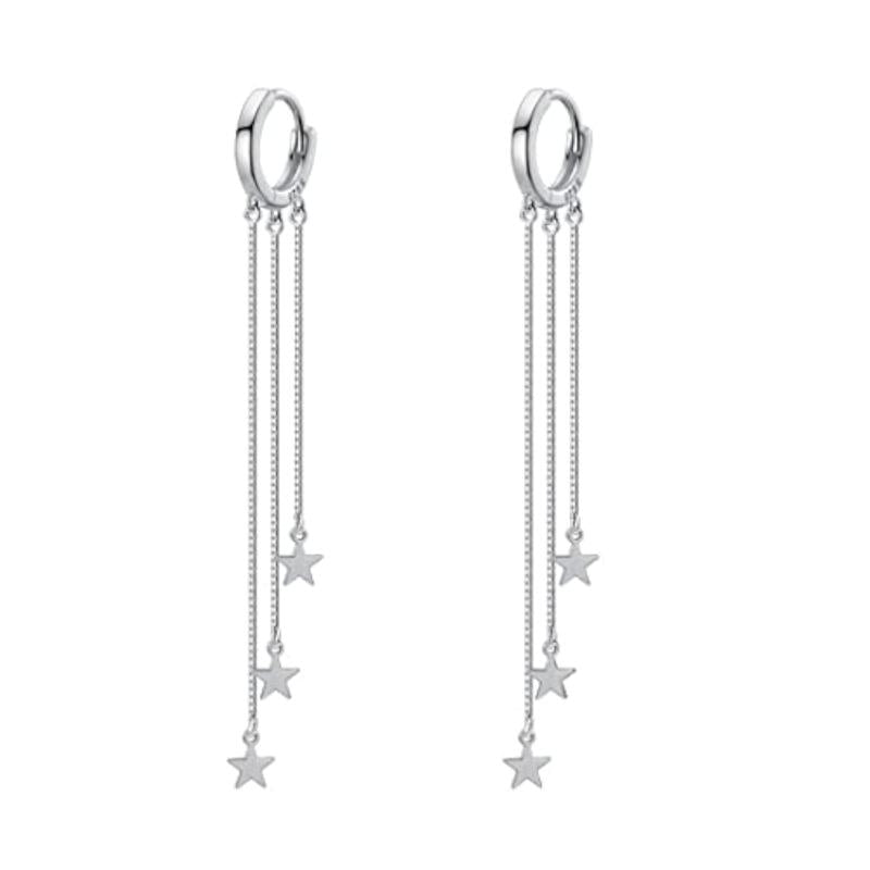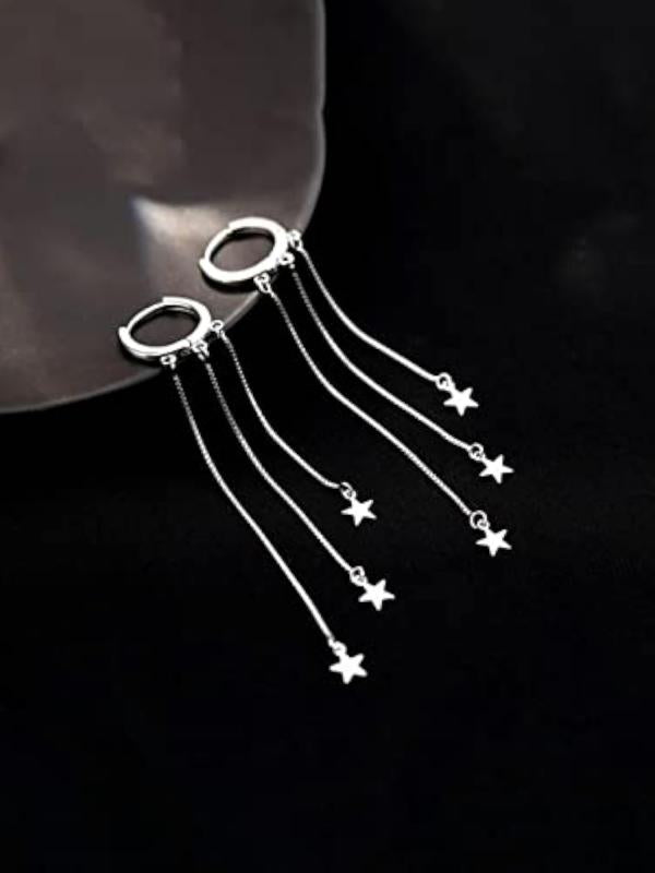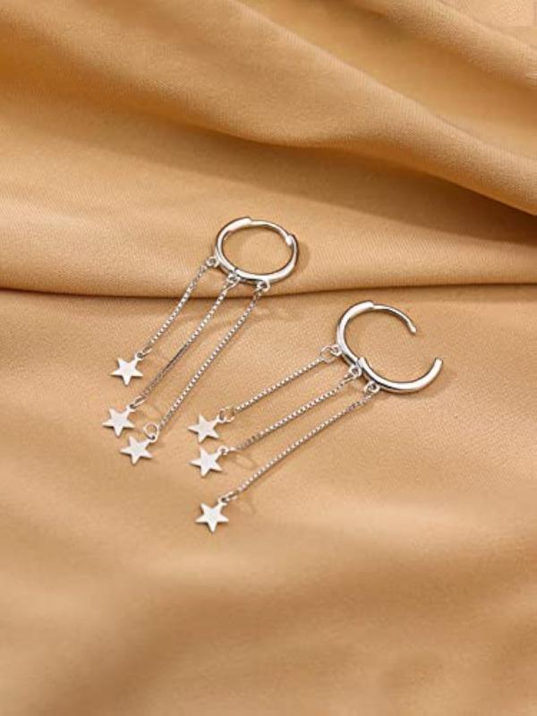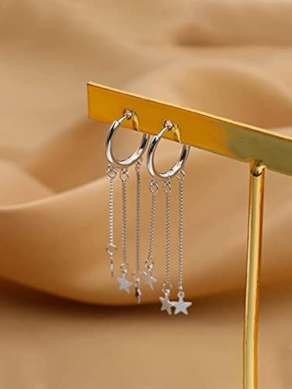 Add a touch of glamour to your look with these stylish earrings featuring toned round studs and triple chain stars. Perfect for adding a trendy vibe to any outfit.