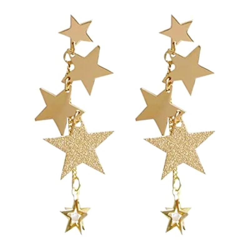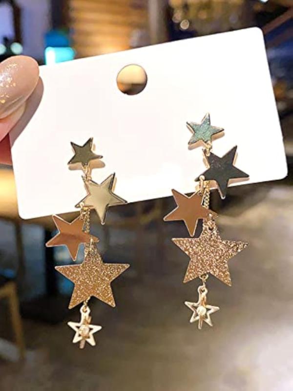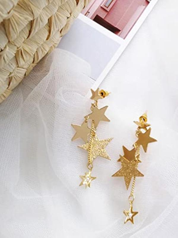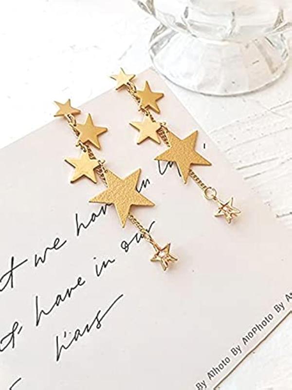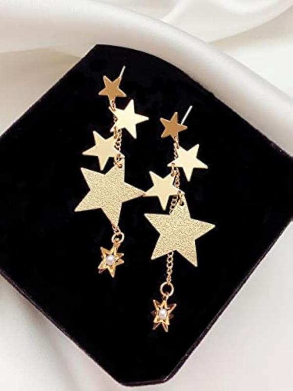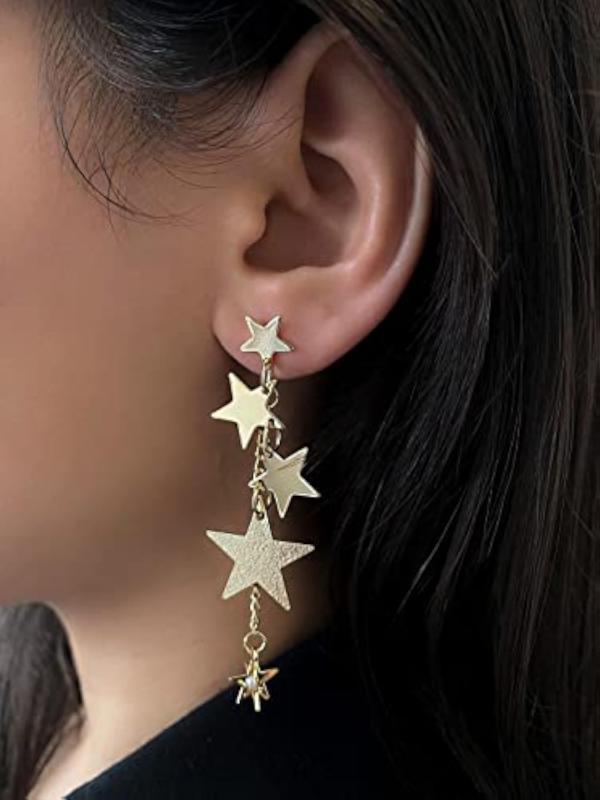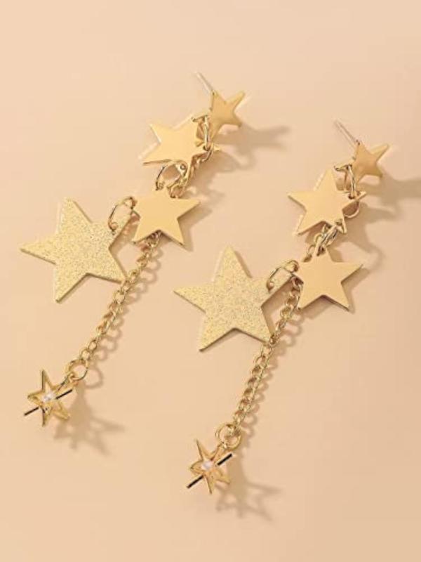 Elevate your style with these trendy star hanging chain dangler earrings.