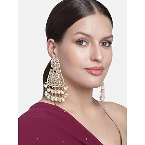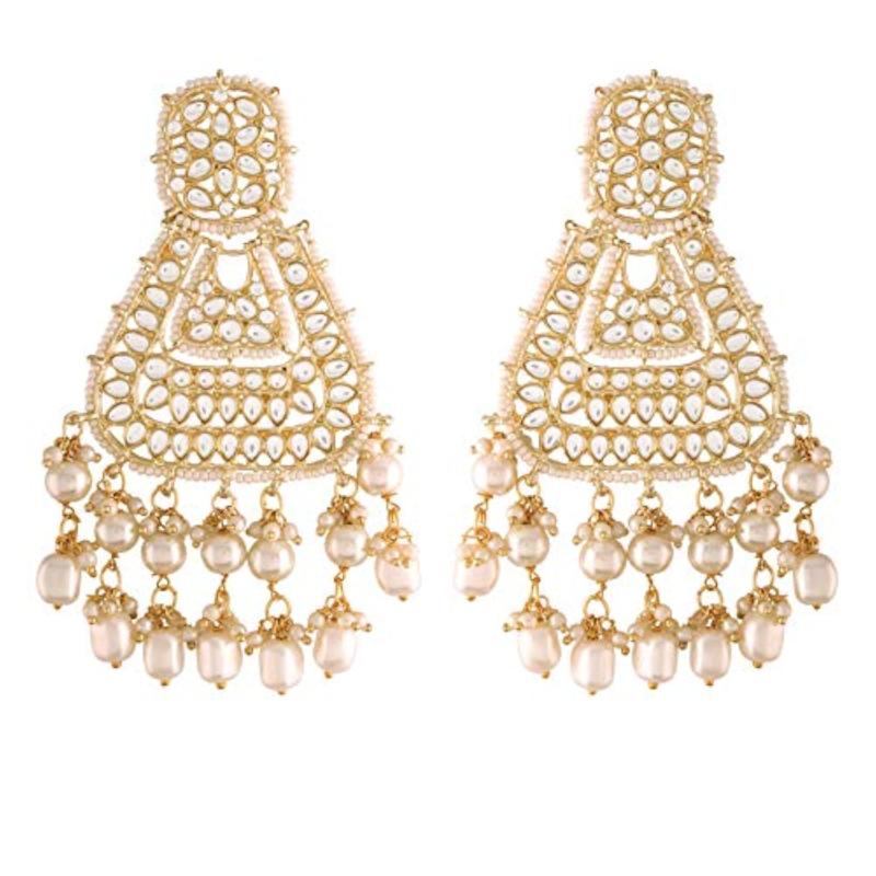 Add a touch of elegance with these 18K plated earrings encased with faux Kundan and pearl. Perfect for traditional occasions.