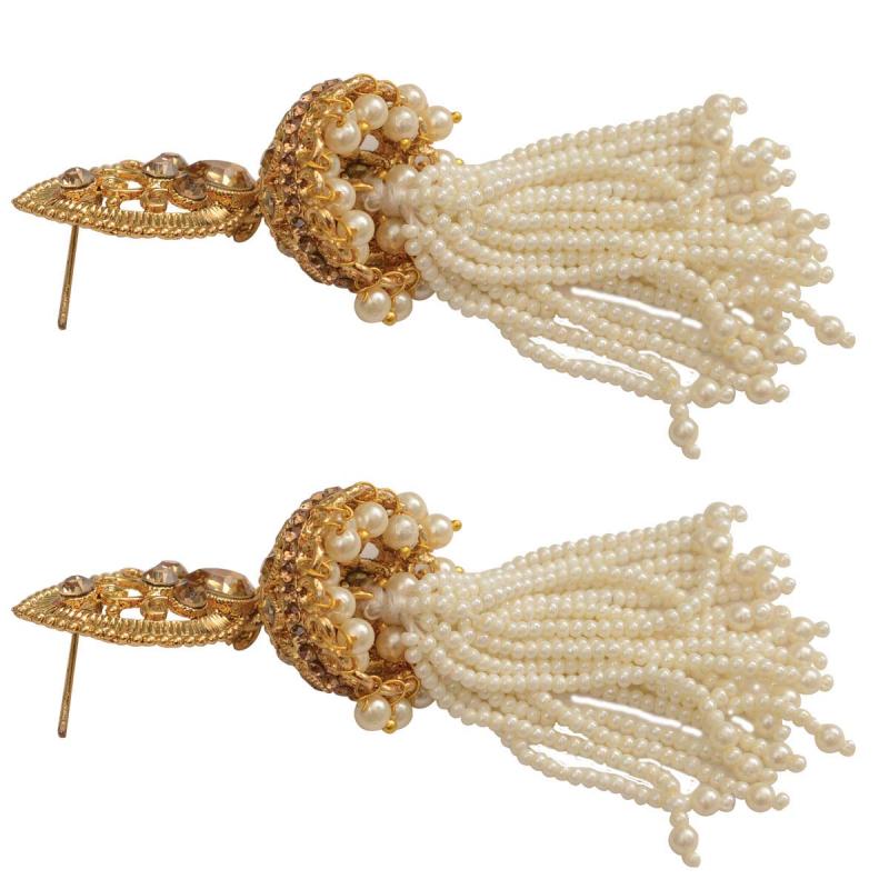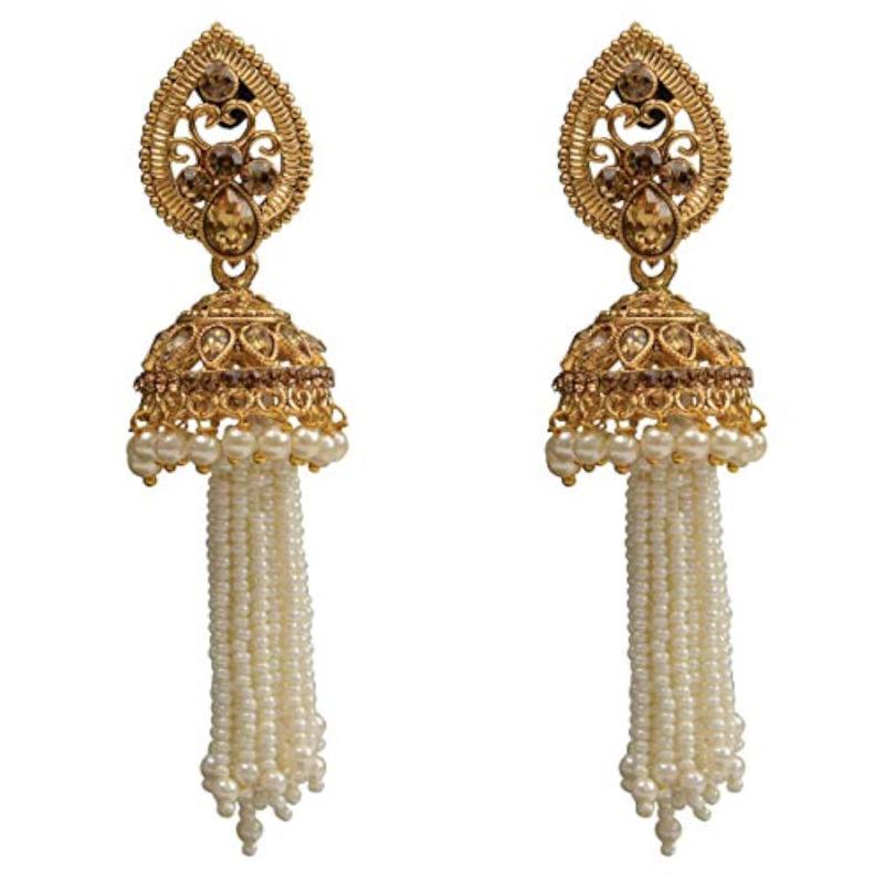 Elegant jhumki earrings featuring intricate traditional design. Perfect for adding a touch of Indian charm to your outfit.