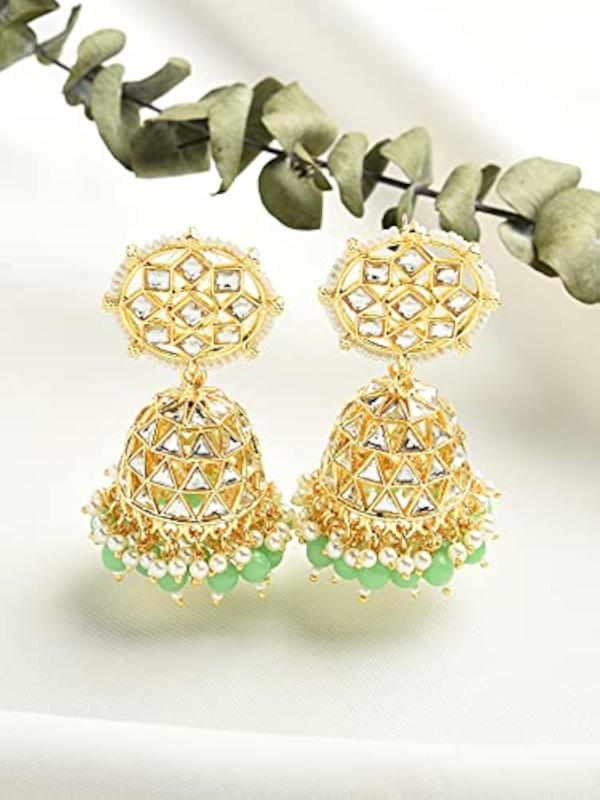 Elegant and timeless, these Kundan Jhumki earrings are perfect for adding a touch of glamour to any traditional outfit.