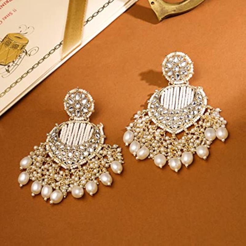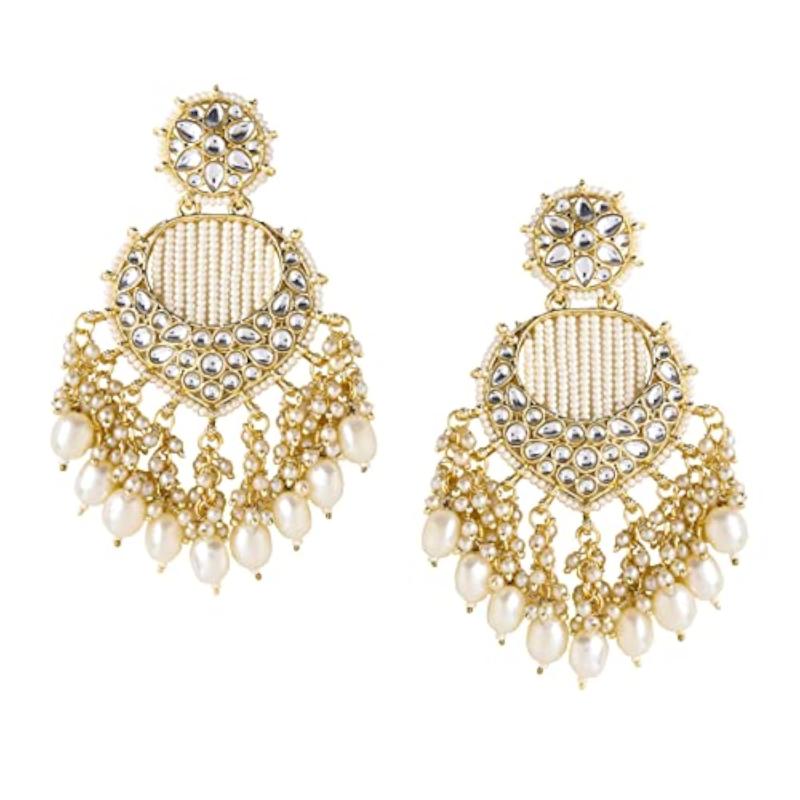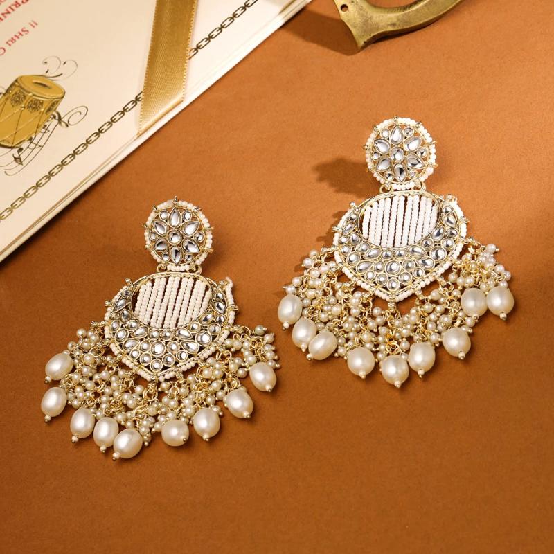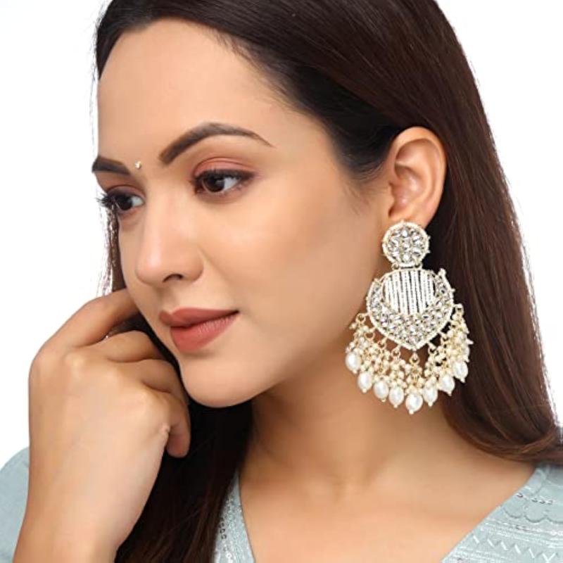 Exquisite Chandbali plated earrings with Kundan stones, perfect for birthday or anniversary gift for women.