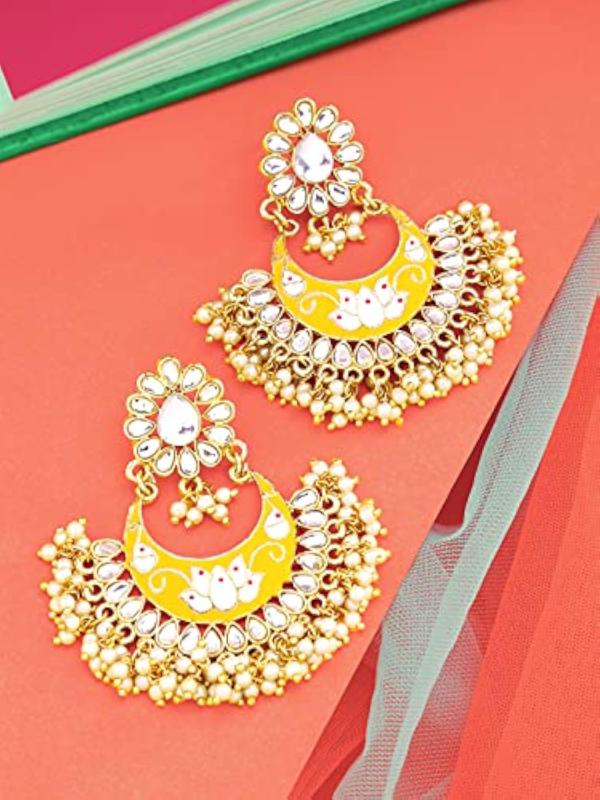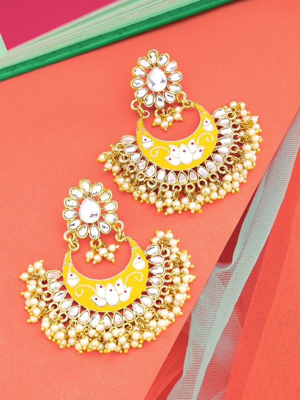 Exquisite Meenakari Chandbali Earrings with intricate detailing. Perfect for adding a touch of traditional charm to your ethnic outfits.