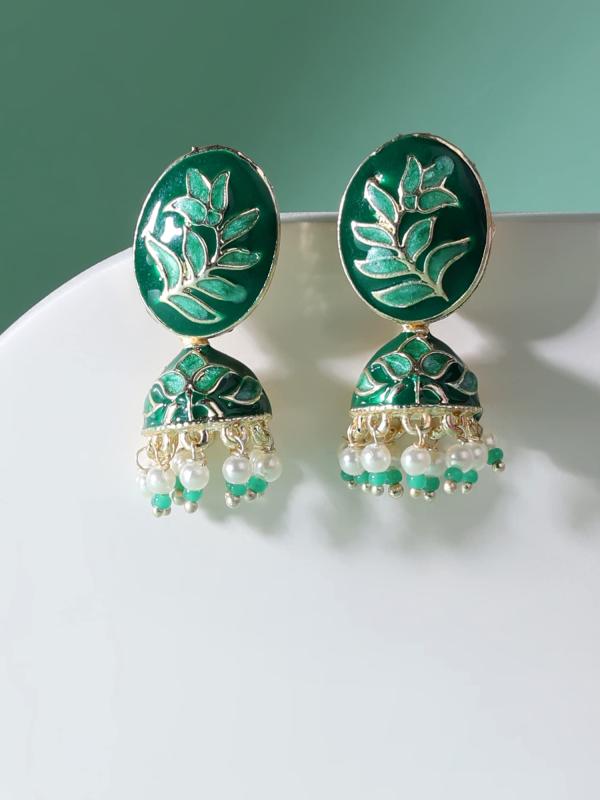 Enhance your style with these elegant Meenakari Jhumki Earrings. Perfect for traditional occasions and daily wear.
