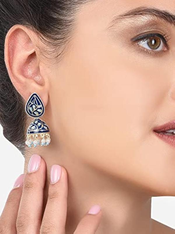Elegant Meenakari jhumki earrings with intricate design, perfect for women.