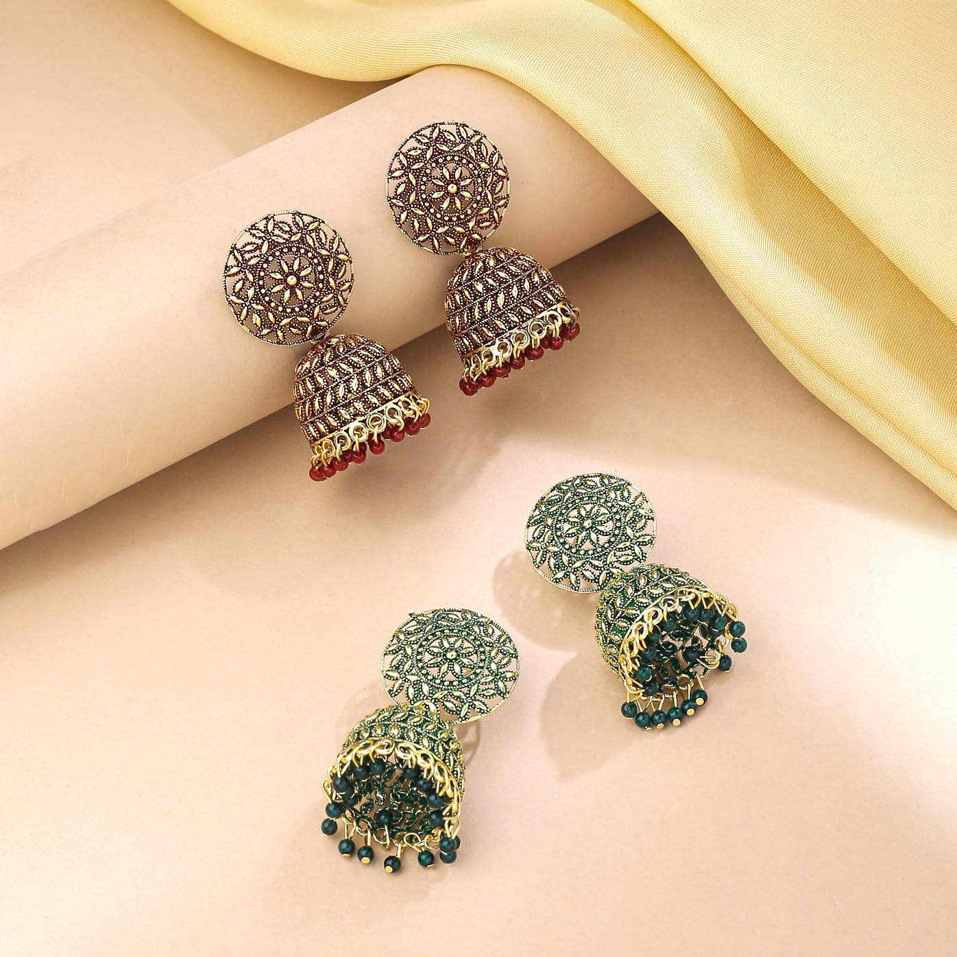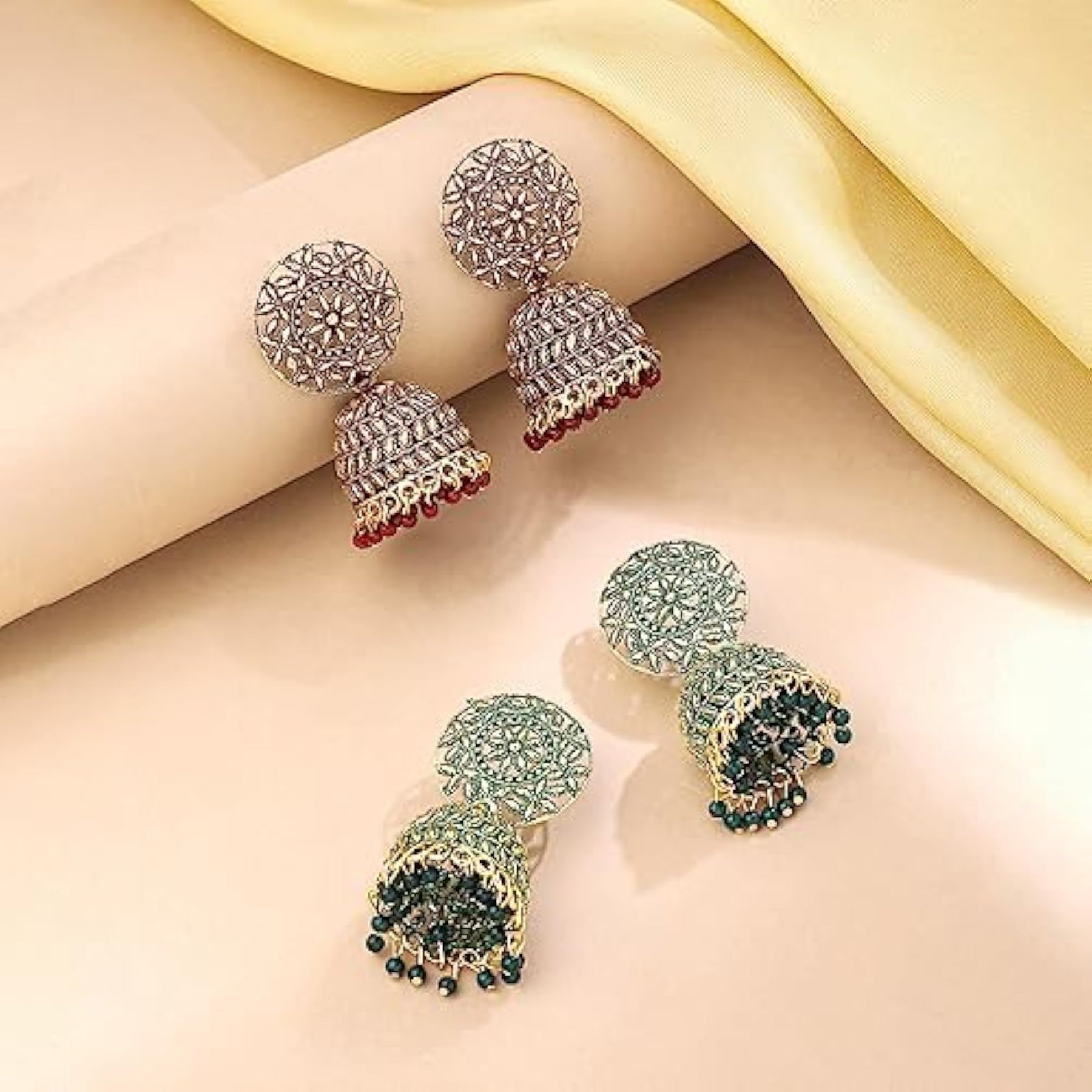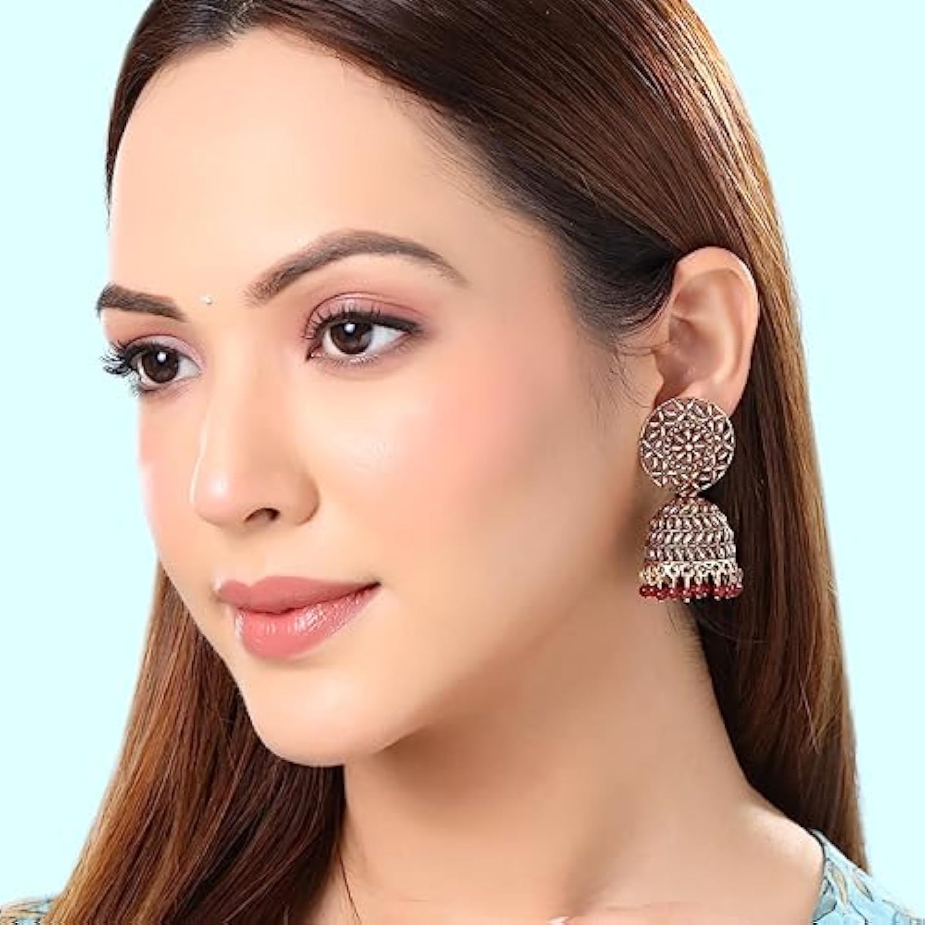 Beautifully designed earrings with traditional jhumka style, perfect gift for wife's birthday or anniversary.