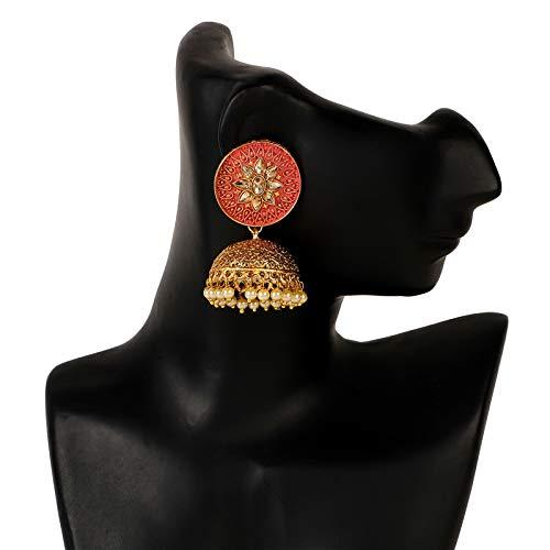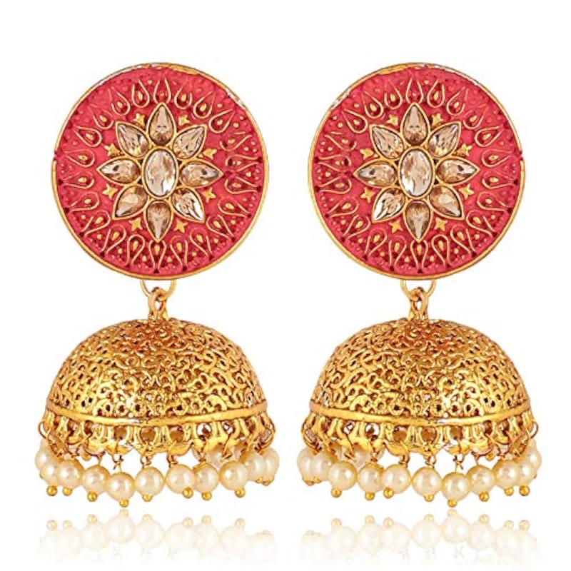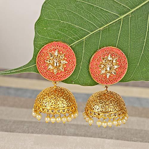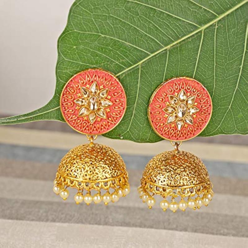 Add a touch of traditional elegance to your outfit with these stunning pearl plated jhumki earrings.
