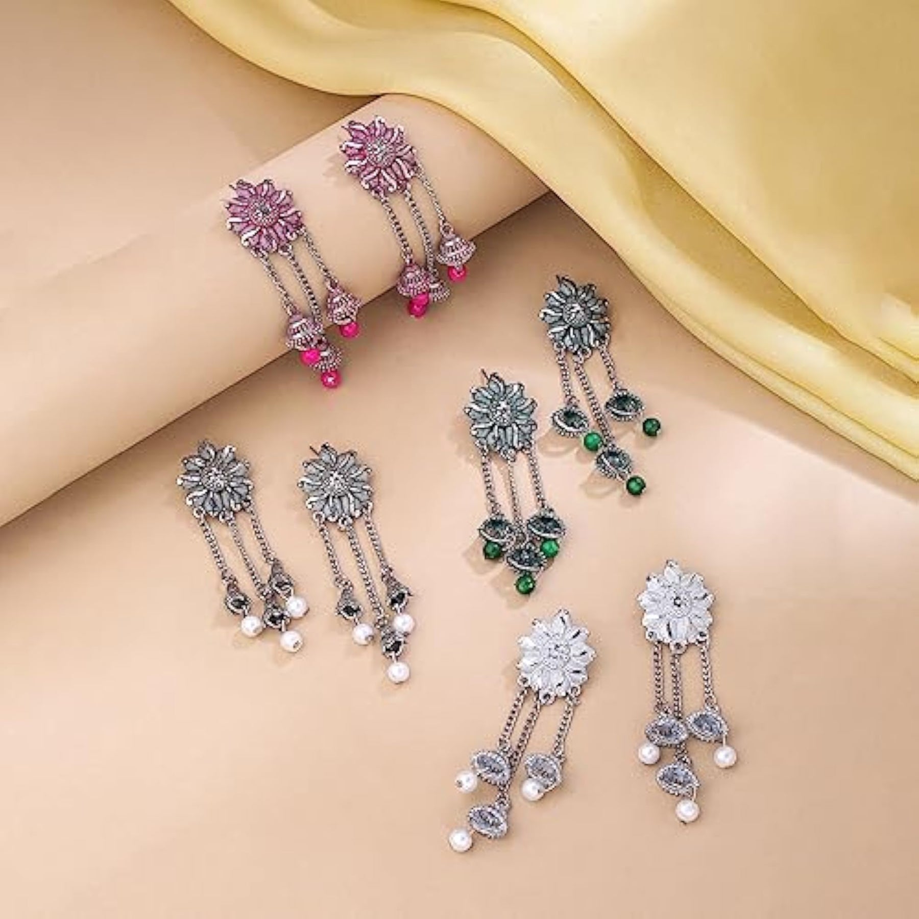 Elegant and stylish dome shaped dangler jhumki earrings combo for birthday gifts.