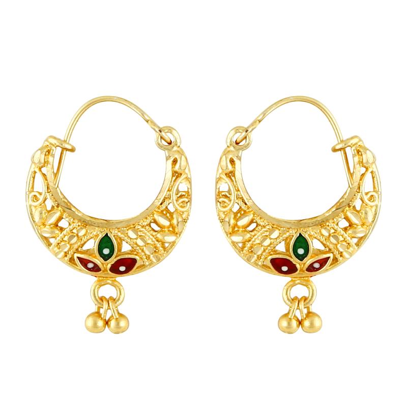 Add a touch of South Indian charm to your look with these exquisite studs earrings. Crafted from 1g 18k copper brass and adorned with a beautiful ruby meenakari design, these earrings are perfect for any traditional occasion.