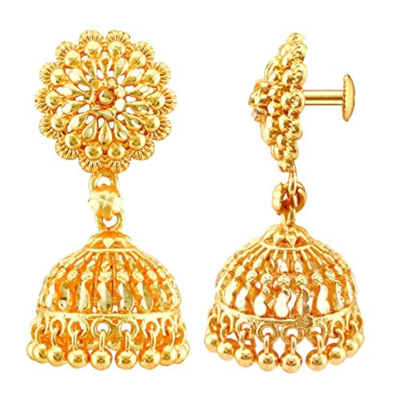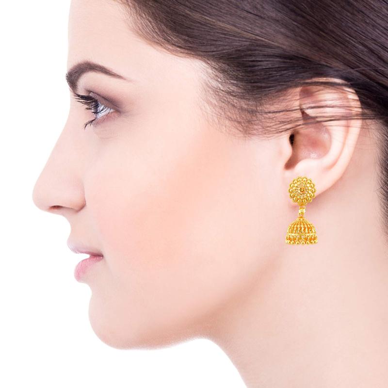 Elegant set of handcrafted South Indian Meenakari screw-back studs jhumkas. Perfect for traditional occasions.