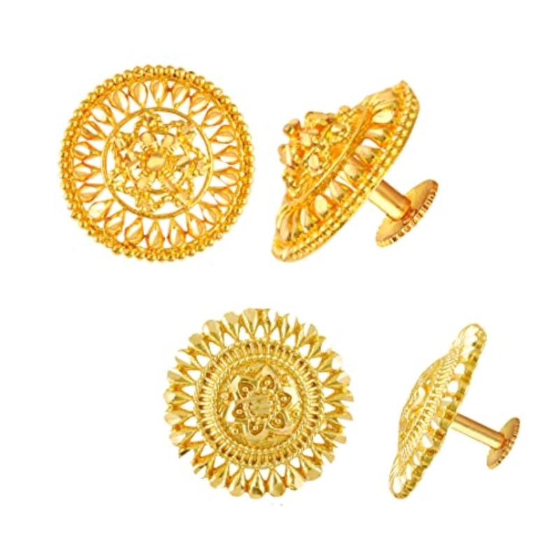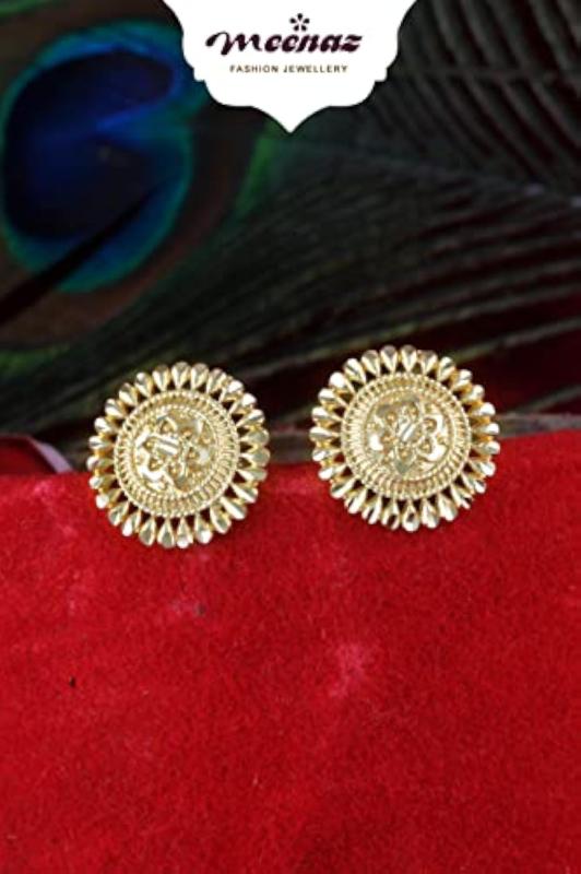 Elegant set of one gram 18k copper brass earrings with traditional temple design. Features beautiful ruby and meenakari work. Perfect for adding a touch of South Indian style to your look.