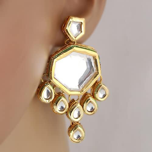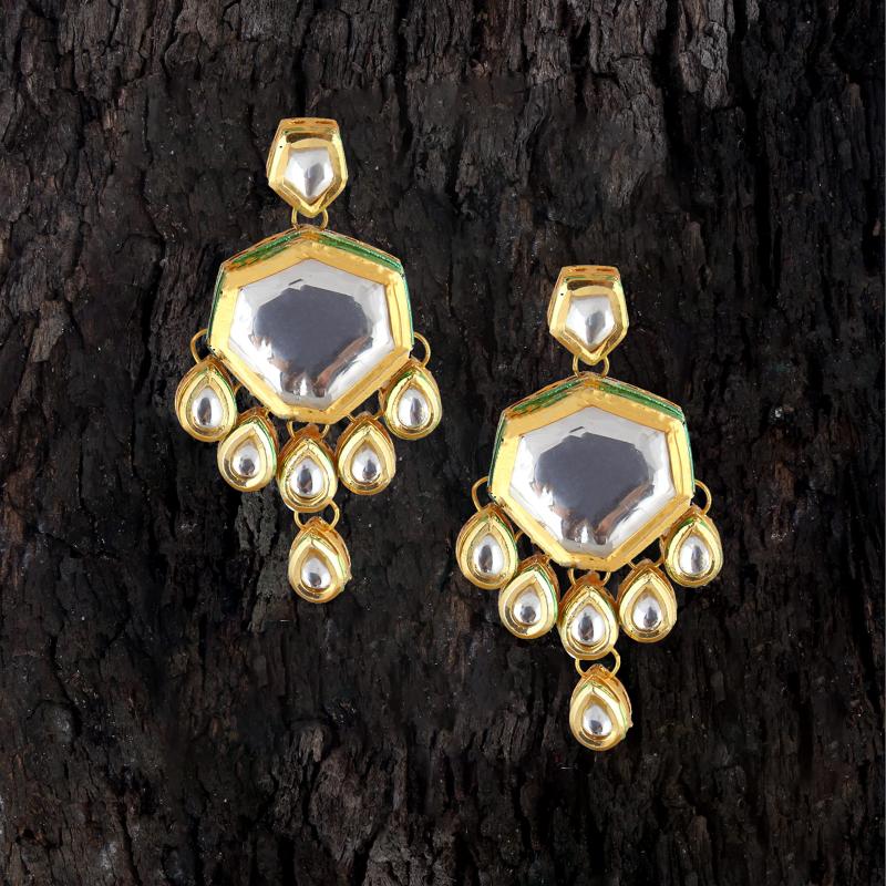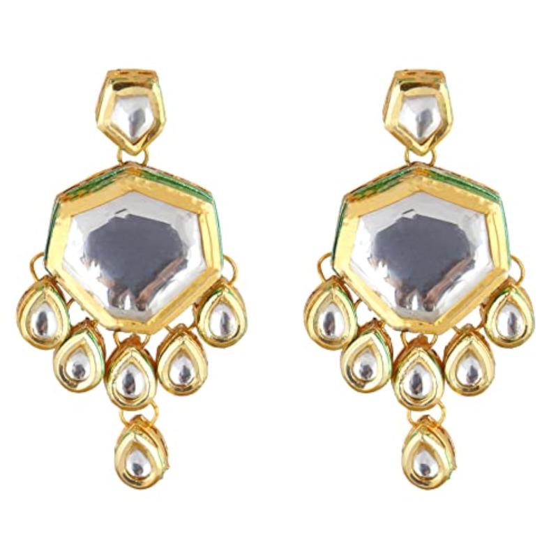 Add a touch of elegance to your outfit with this stunning Meenkari earring set. The intricate design and high-quality materials make it a must-have accessory.