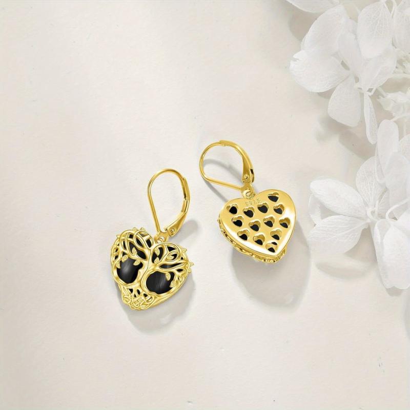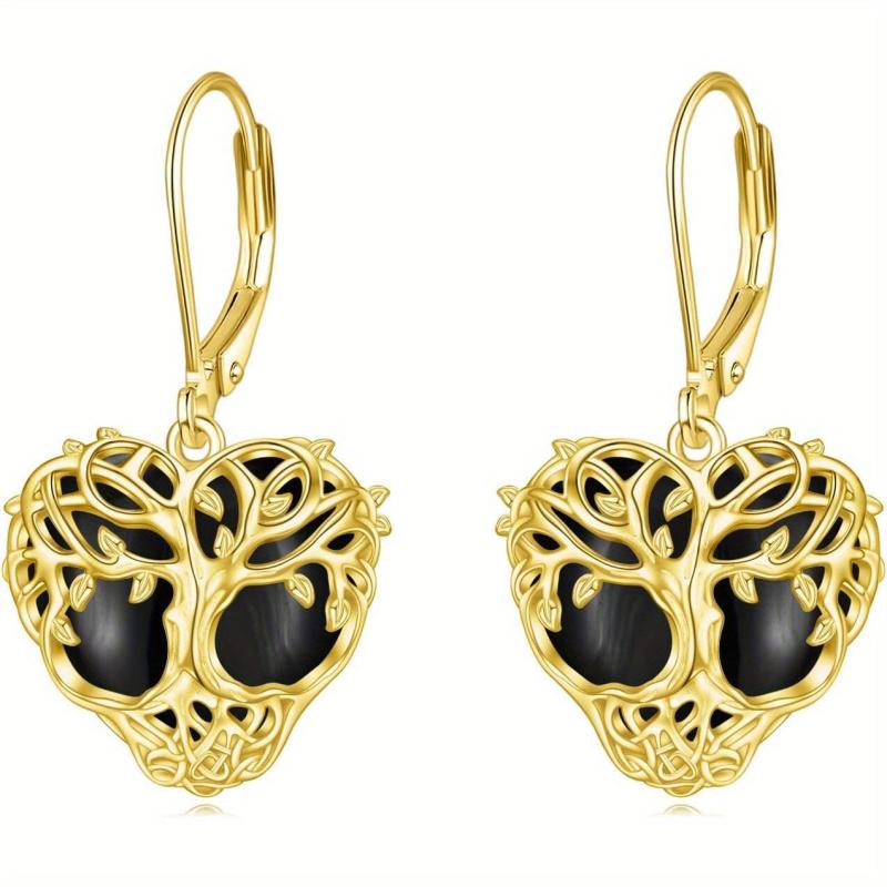 These stunning earrings feature a tree of life design with onyx and turquoise stones. Made of high-quality sterling silver, they are perfect for adding a touch of elegance to any outfit.