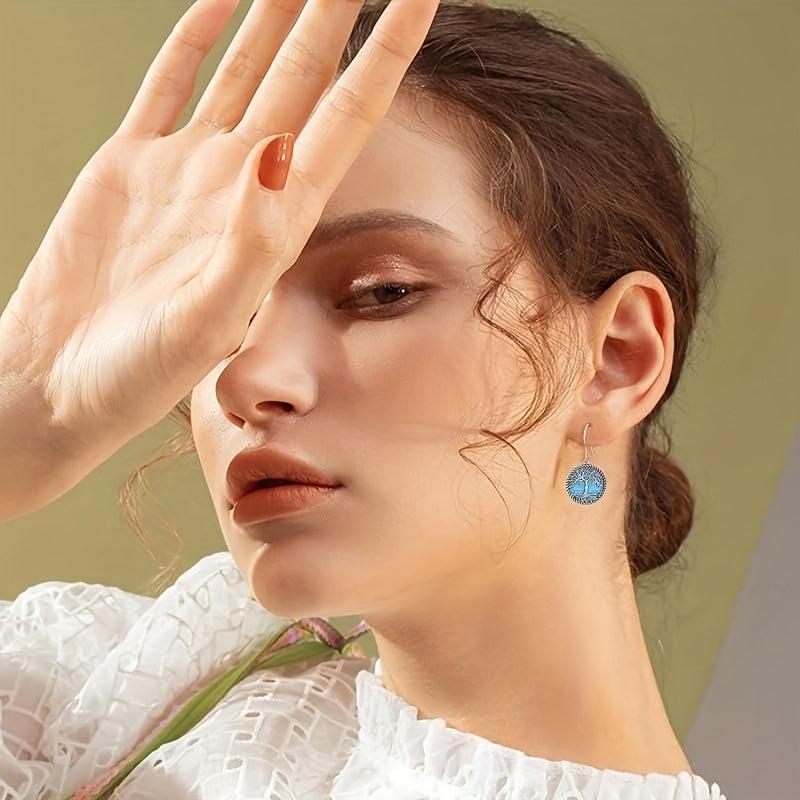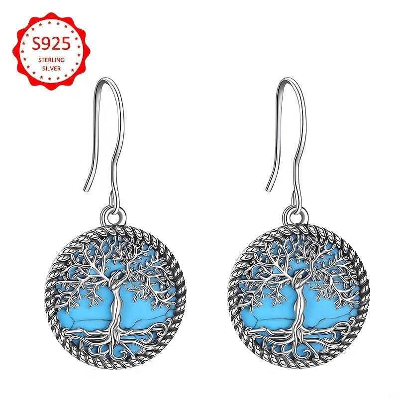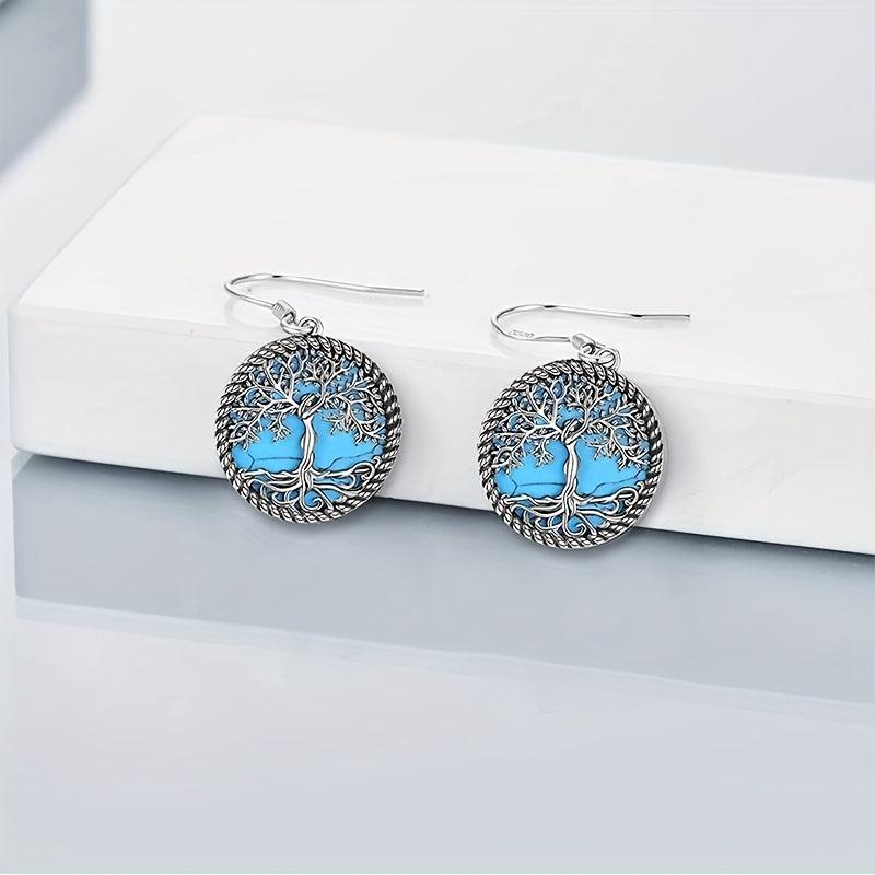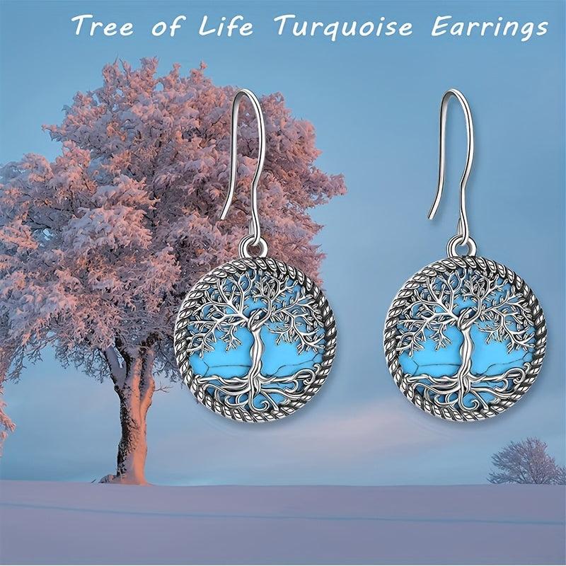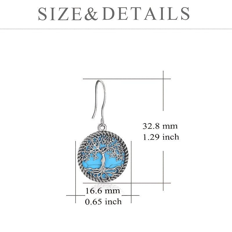 Tree Of Life Earrings Sterling Silver Turquoise Dangle Drop Earring