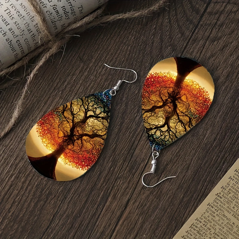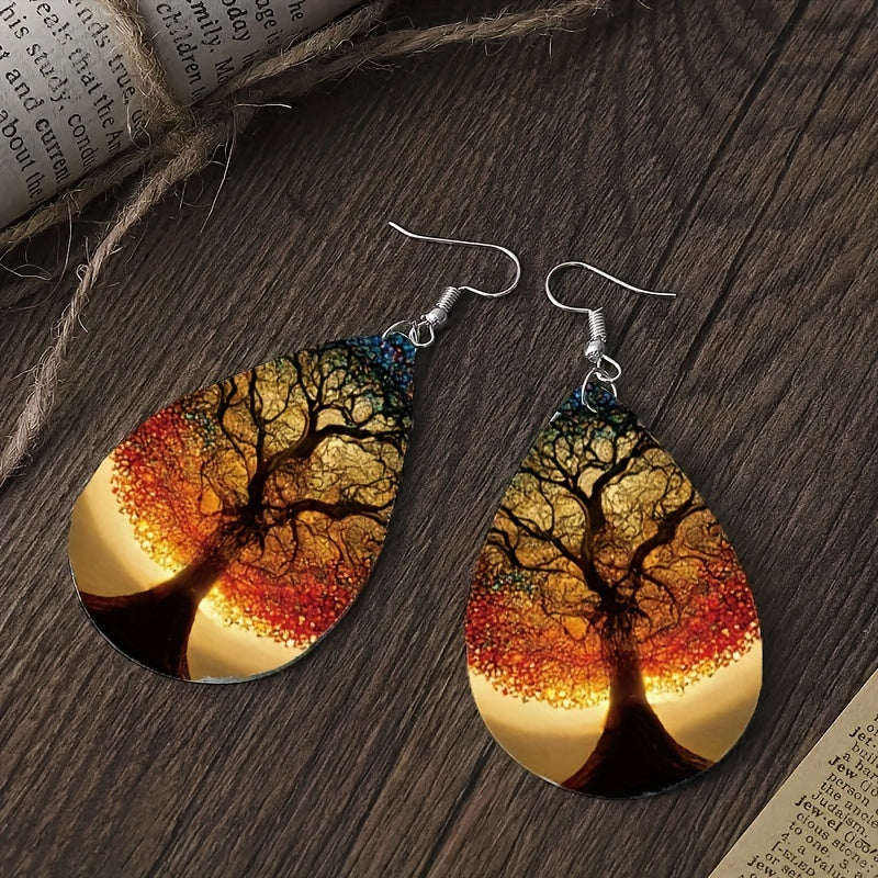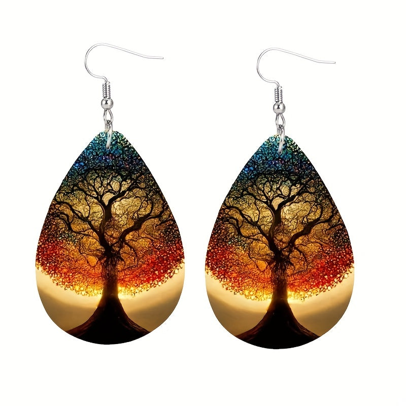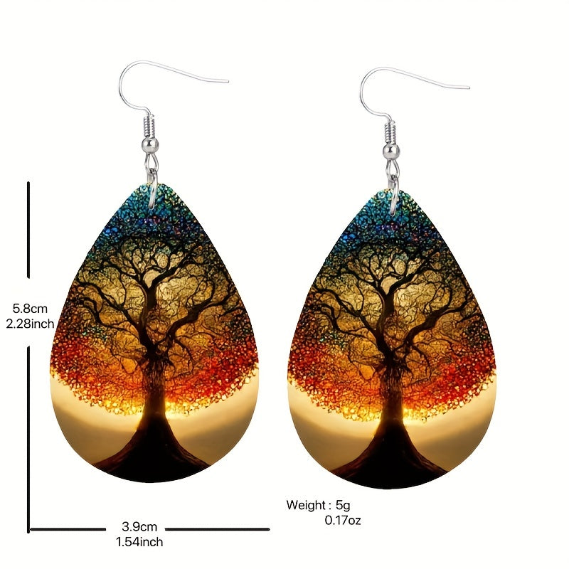 These stylish faux leather earrings feature the Tree of Life design, suitable for both men and women. Perfect for parties and casual wear.