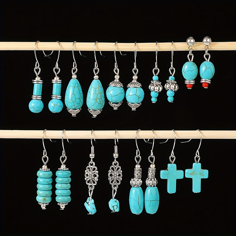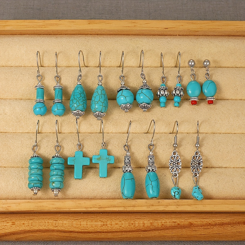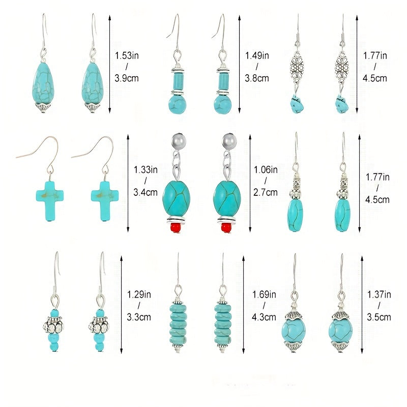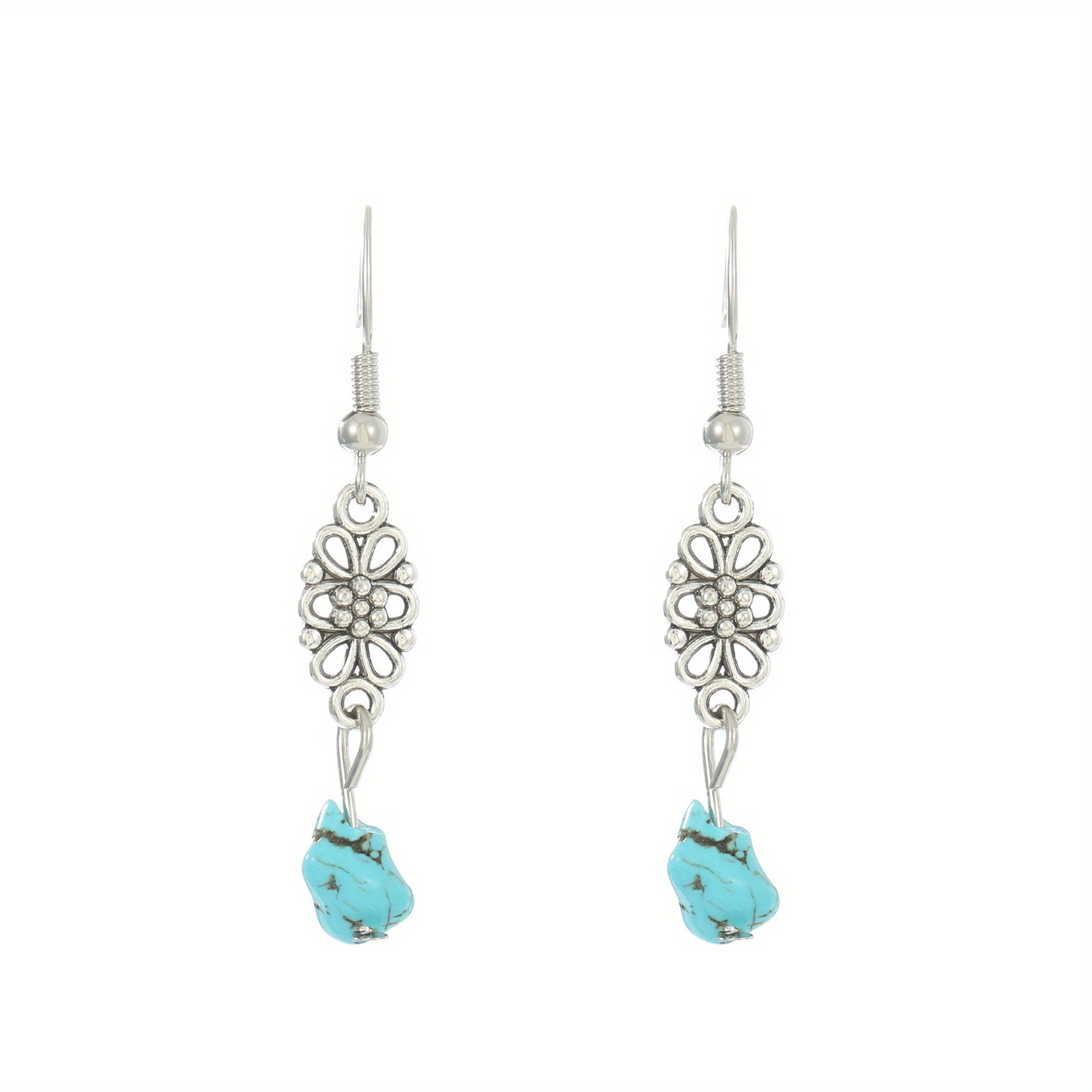 Add a retro bohemian touch to your outfit with these turquoise dangle earrings. They make a creative gift for women and girls who love unique jewelry pieces.