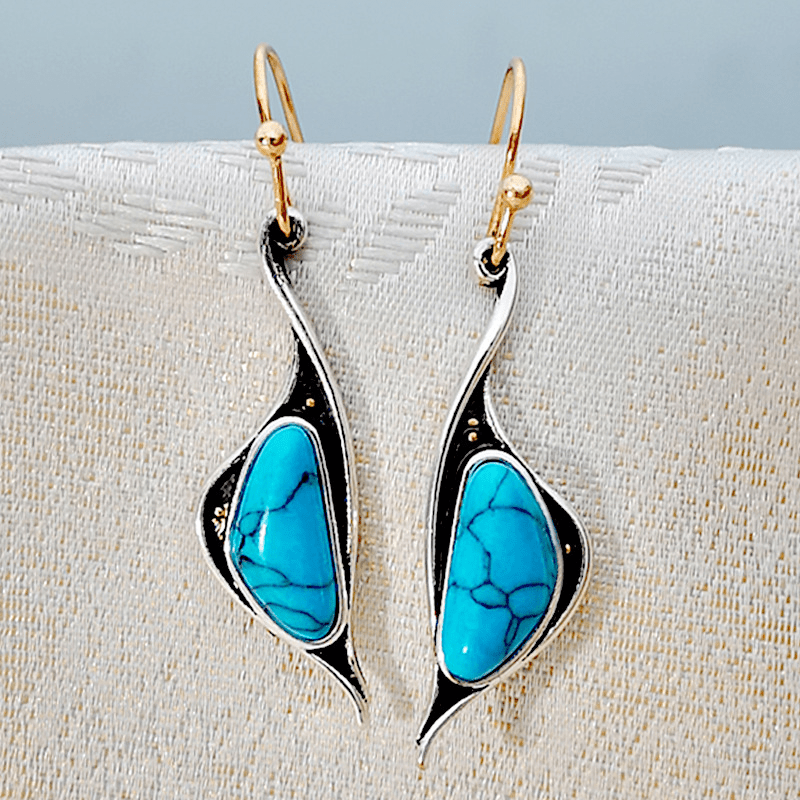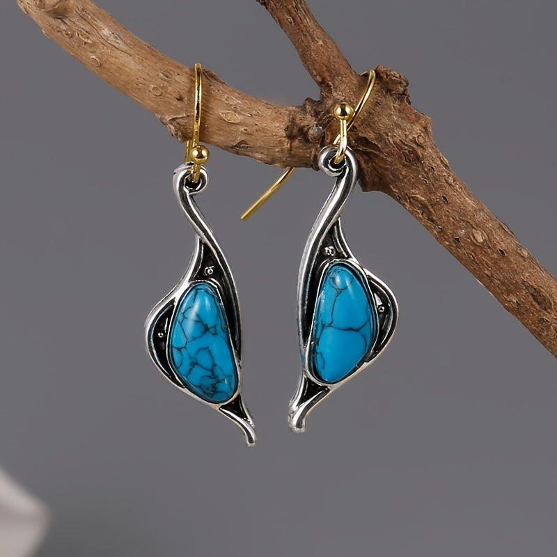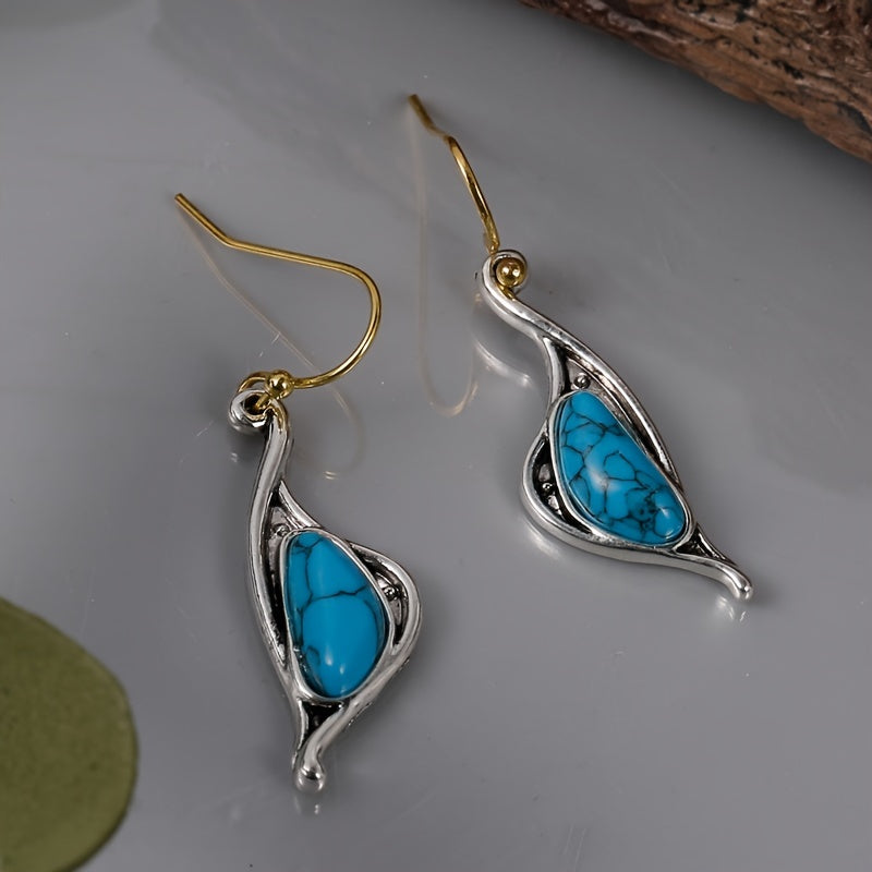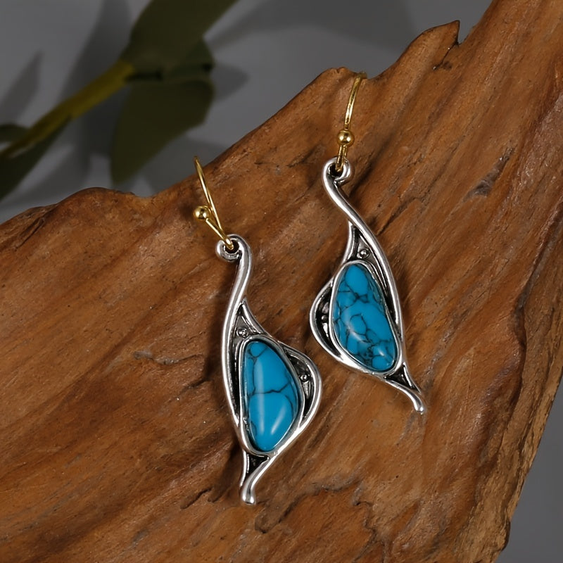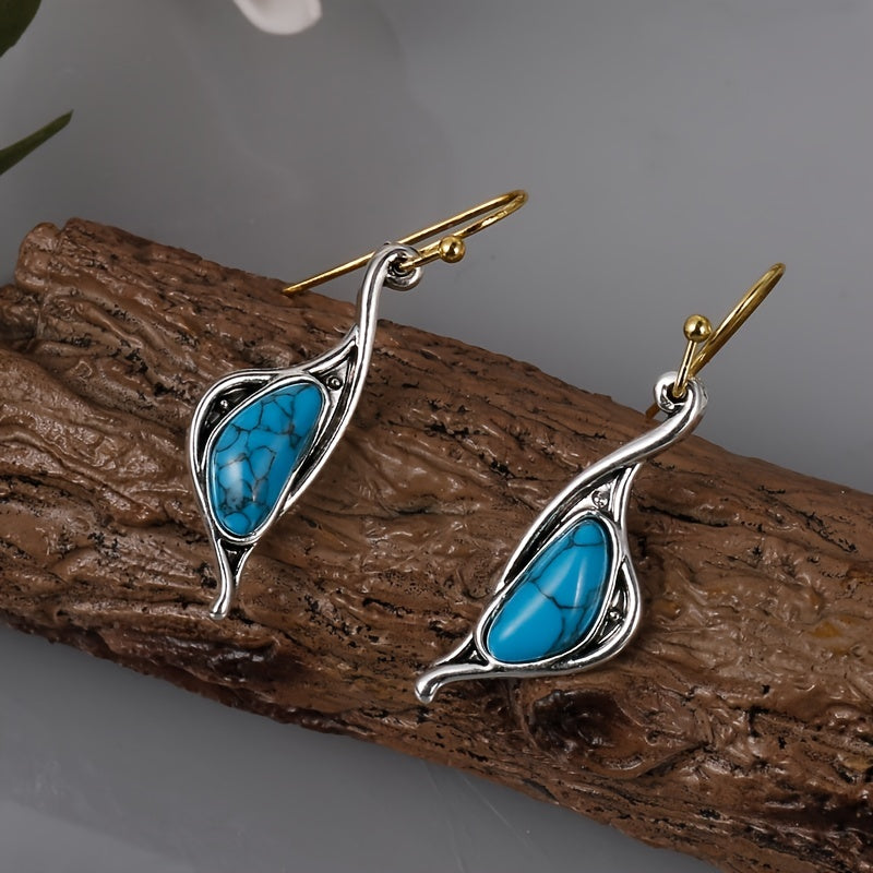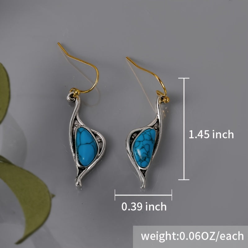 Elegant turquoise drop earrings with 925 silver plating, featuring ancient silver ear jewelry design.