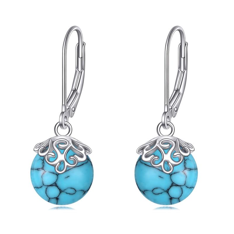 These elegant dangle earrings feature synthetic turquoise stones set in intricate filigree designs. Made of high-quality 925 sterling silver, these earrings are perfect for birthdays or any special occasion.
