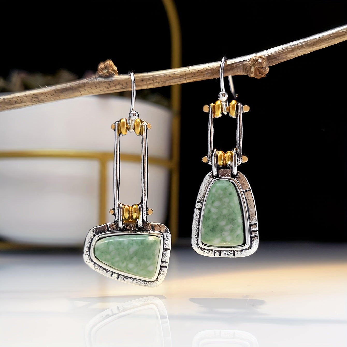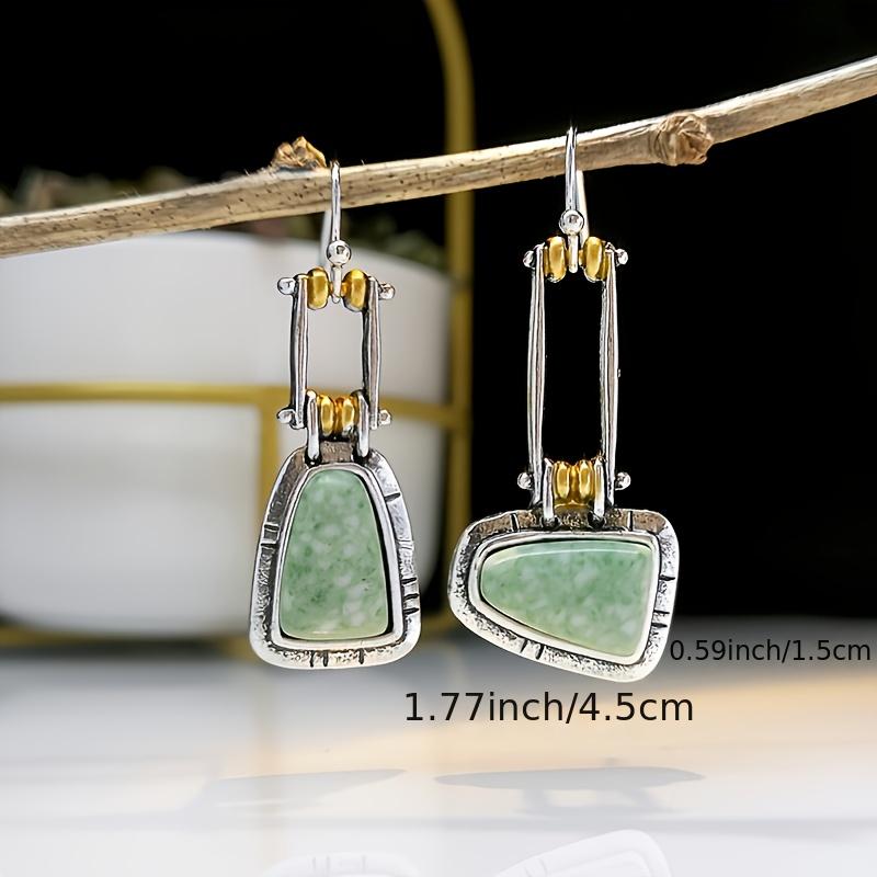 Elegant natural turquoise gemstone stud hook dangle earring with sparkling zircon inlay for a stylish and sophisticated look.