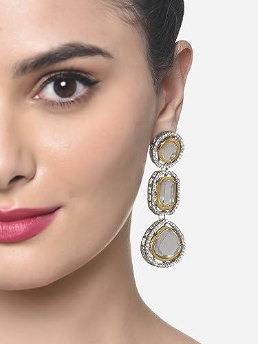 Elegant dangle earrings featuring two tone artificial stones and Austrian diamonds. Perfect for adding a touch of glamour to any outfit.