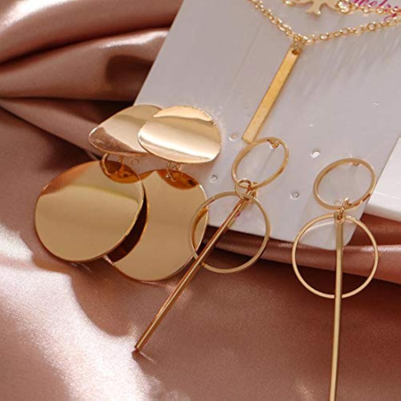 Elevate your style with these modern gold earrings featuring geometric shapes and a sleek design.