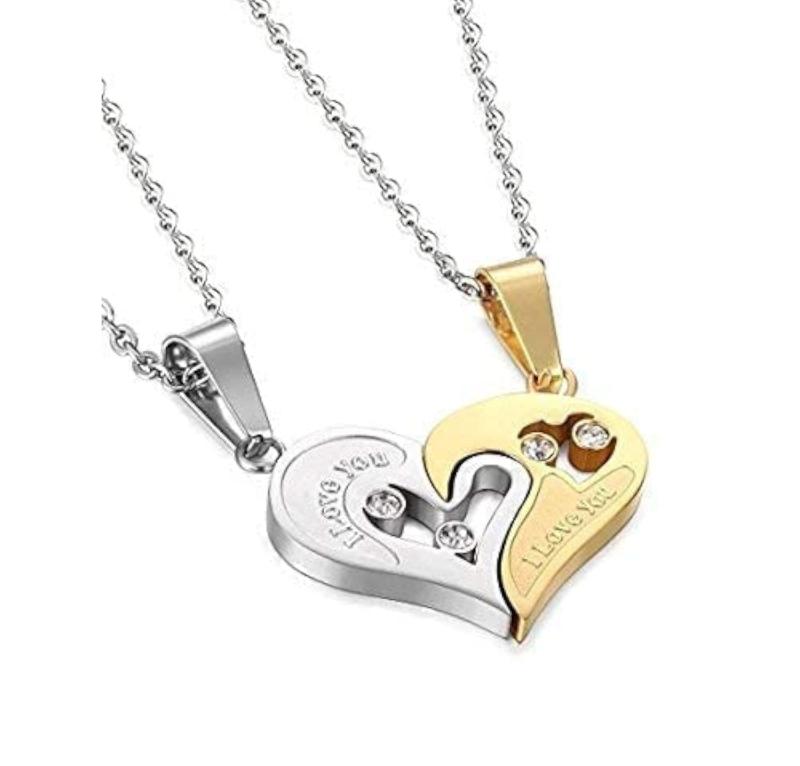 This pendant set is perfect for couples to express their love. Heart-shaped design with 'Love' inscription, ideal for girlfriend or partner on Valentine's Day.