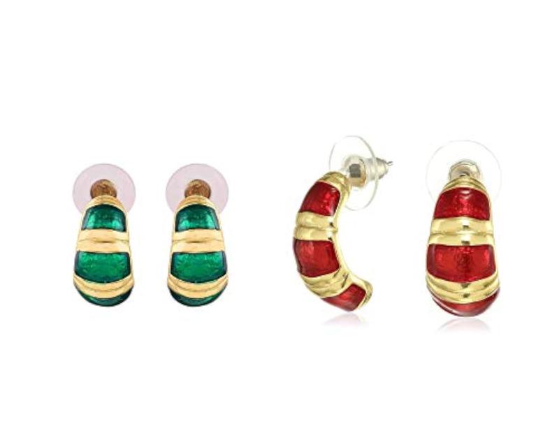 Surprise your loved one with these stunning hoop earrings in vibrant green and red colors. Perfect for Valentine's Day!