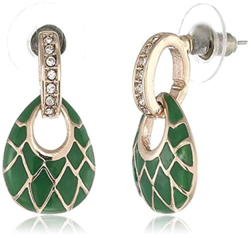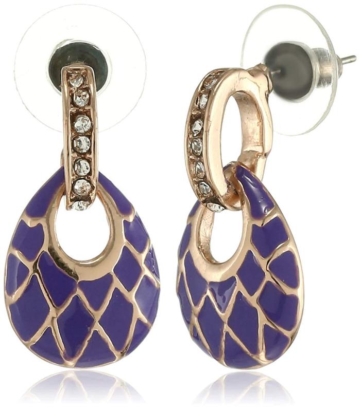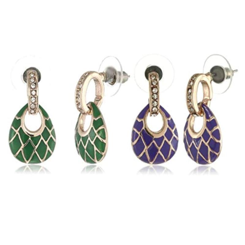 Add a touch of elegance to your Valentine's Day outfit with this stunning combo of rose plated stud earrings in green and purple.