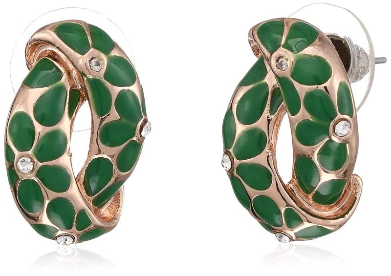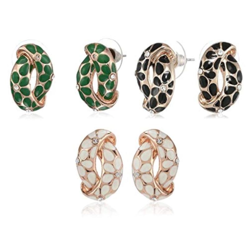 Elegant and stylish stud combo earrings set in white, green, and black. Perfect for Valentine's Day.
