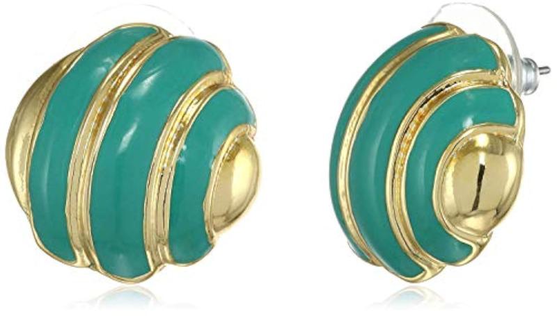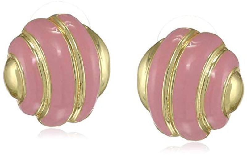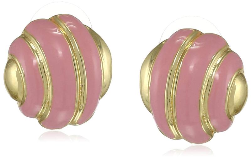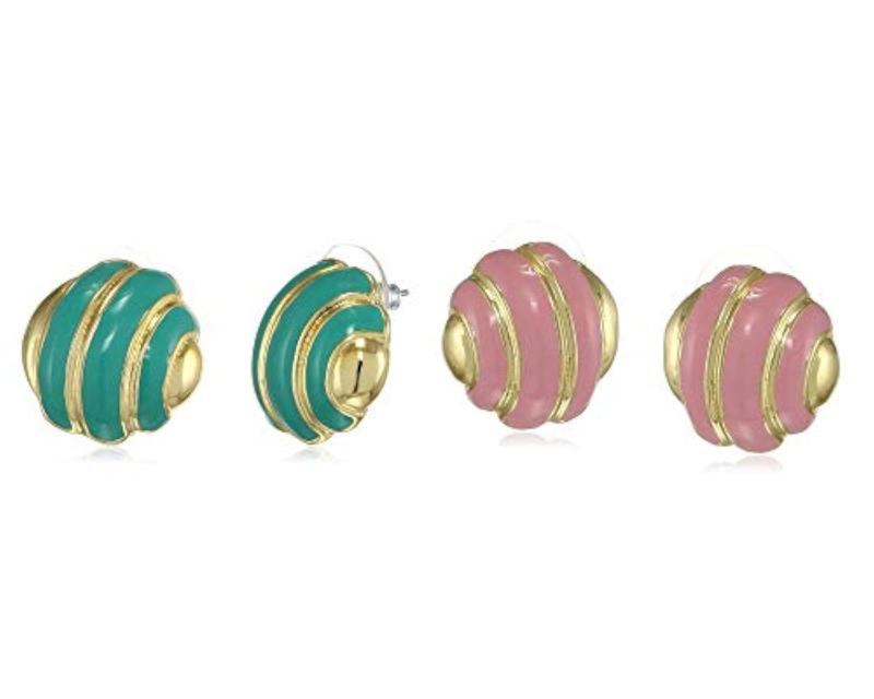 Add a pop of color to your outfit with these charming stud earrings featuring green and pink stones.