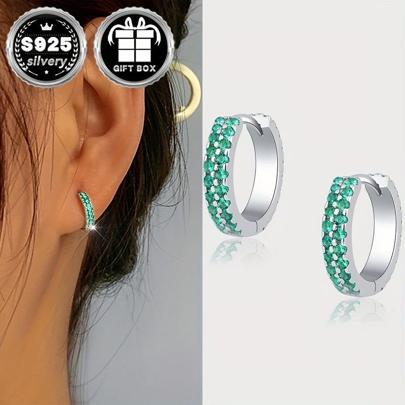 These beautiful hoop earrings are made of 925 silver and feature a dual row of zirconia inlays. The ear needles are also made of silver and are not plated.