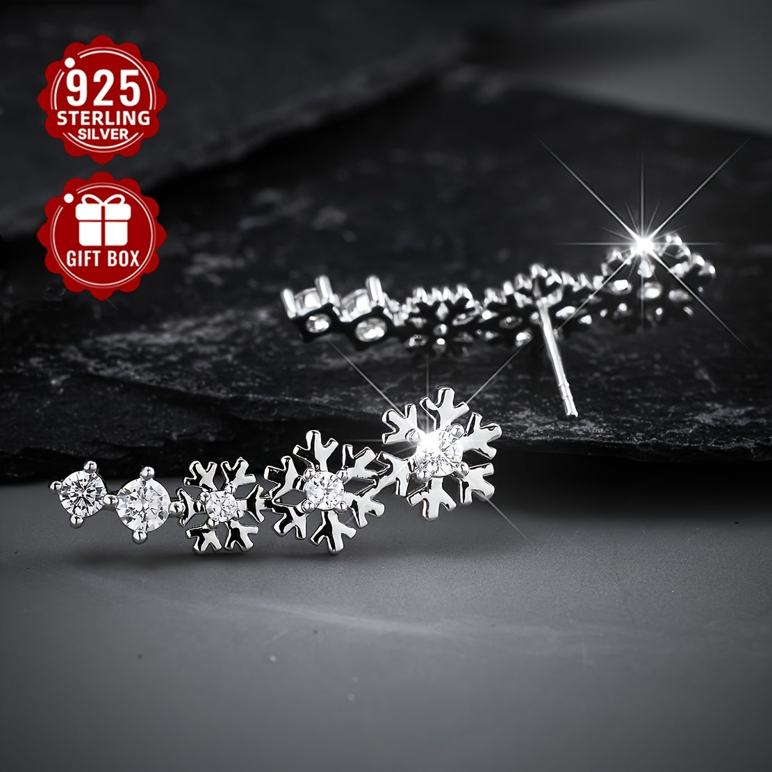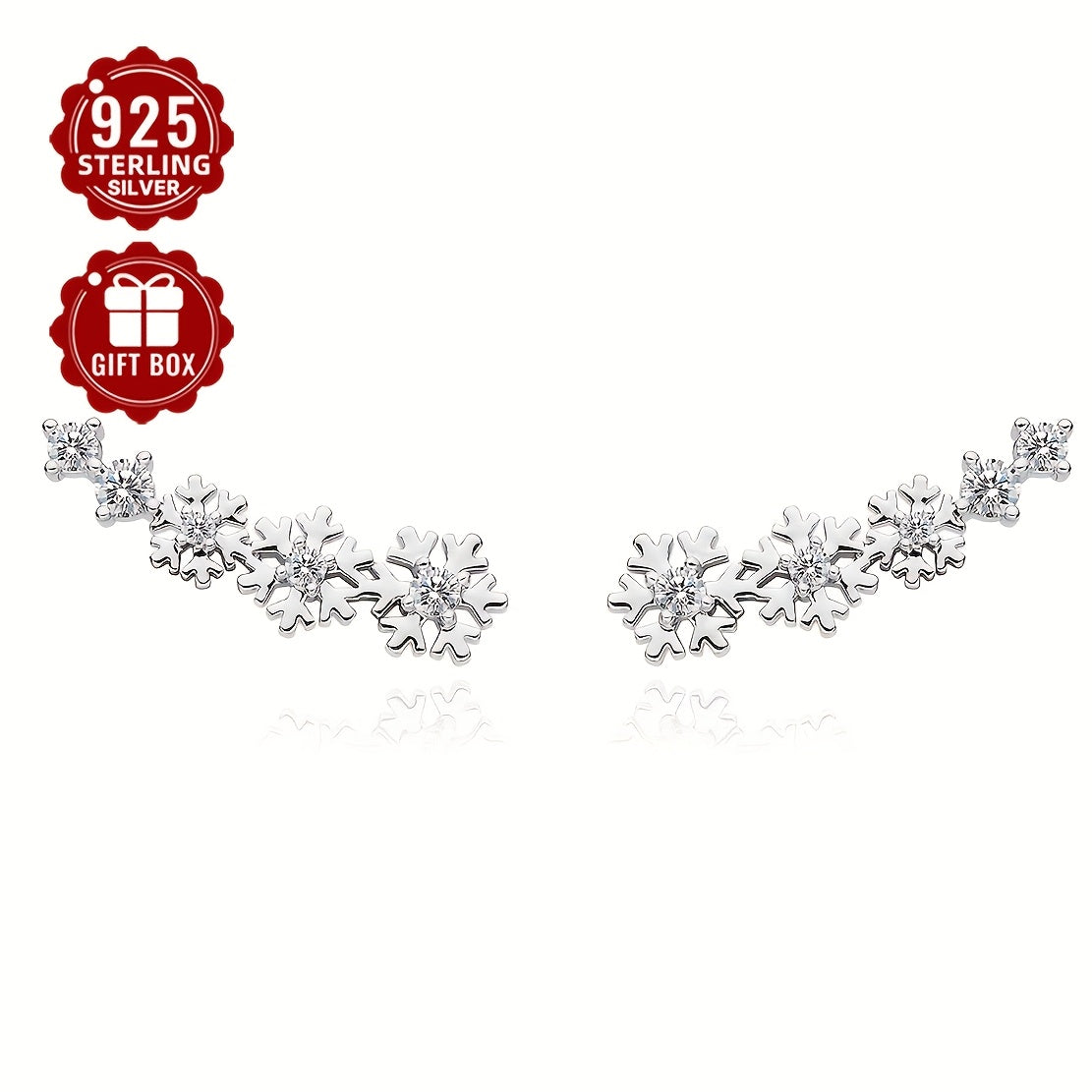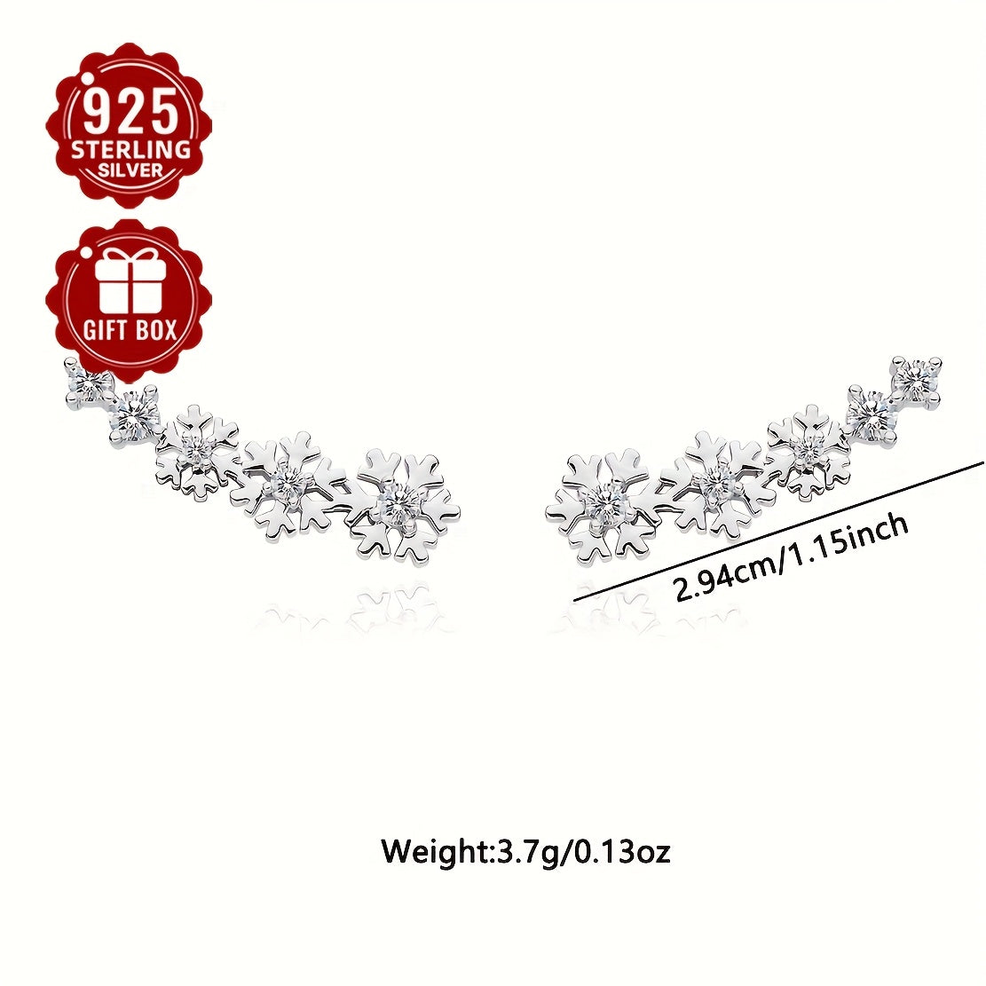 Get into the festive spirit with this stunning 925 silver Christmas snowflake ear studs and full ear earrings set. The intricate design features synthetic cubic zirconia for added sparkle.