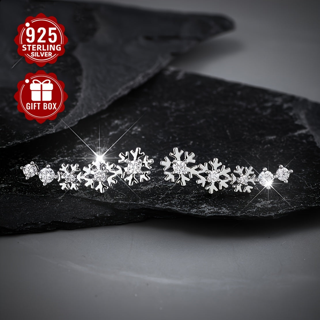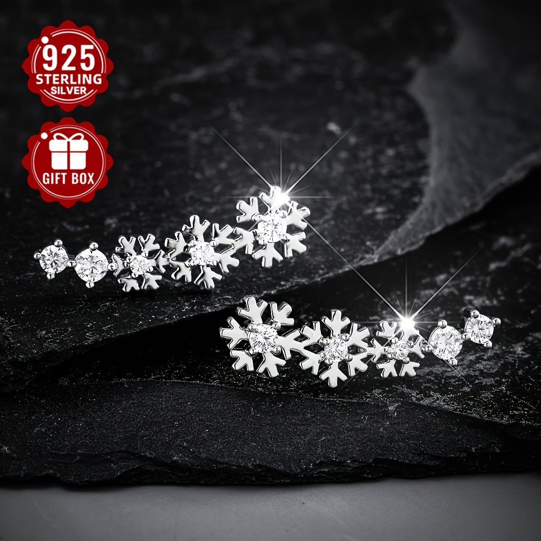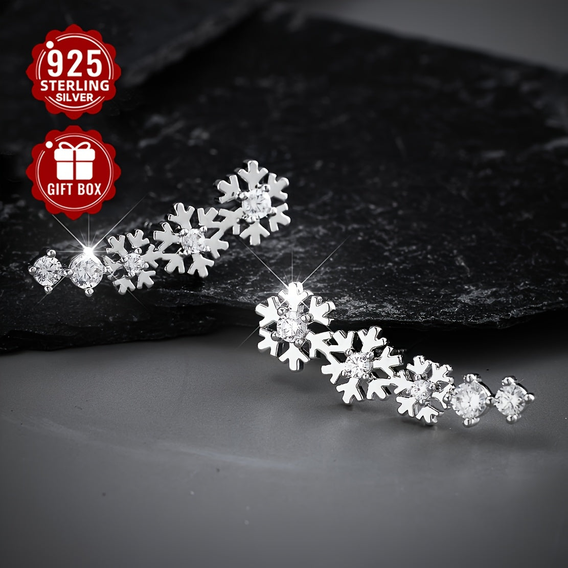 Get into the festive spirit with this stunning 925 silver Christmas snowflake ear studs and full ear earrings set. The intricate design features synthetic cubic zirconia for added sparkle.