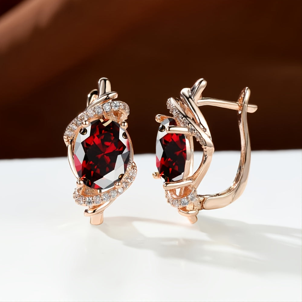 Elegant pair of hoop earrings featuring pink stones in a geometric design. Perfect for parties or special occasions.