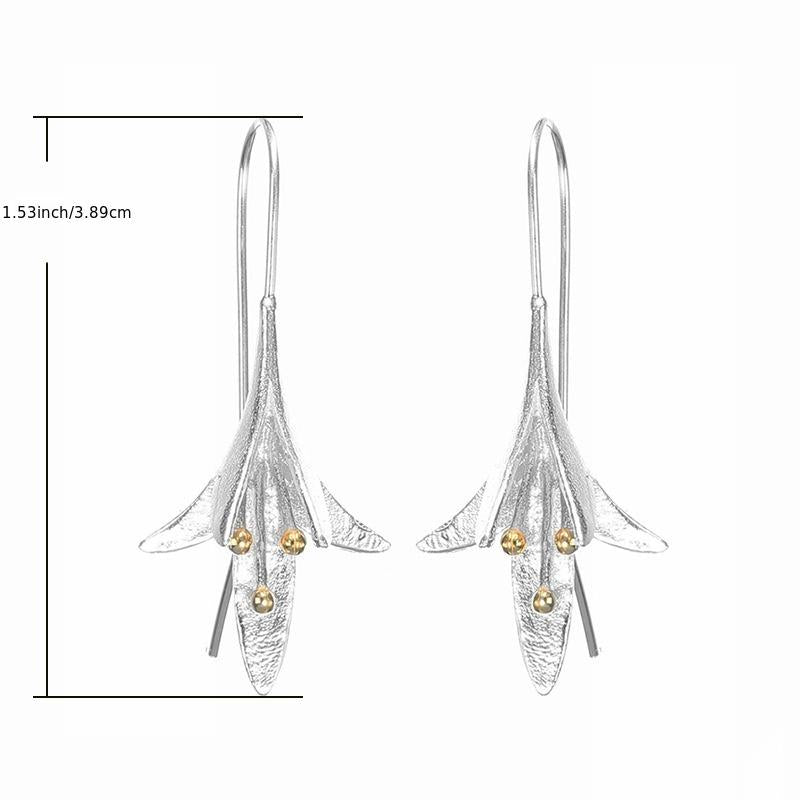 Elegant two tone 925 silver plated dangle earrings featuring blooming flower design, perfect for engagement or everyday wear.