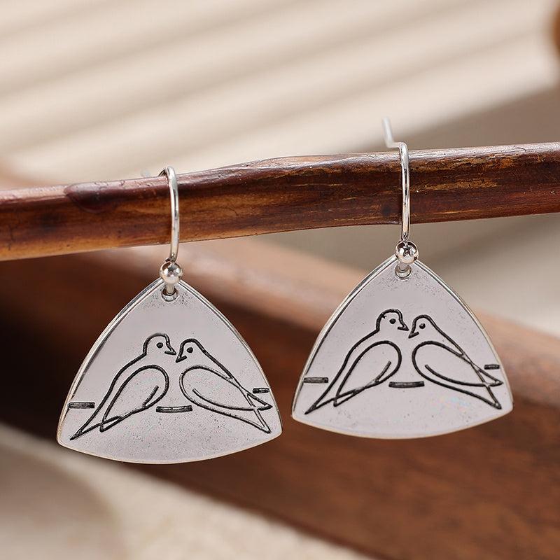 Delicate pair of vintage Bohemian bird earrings in copper teardrop design, ideal for daily wear and parties. Makes a perfect gift for mothers.