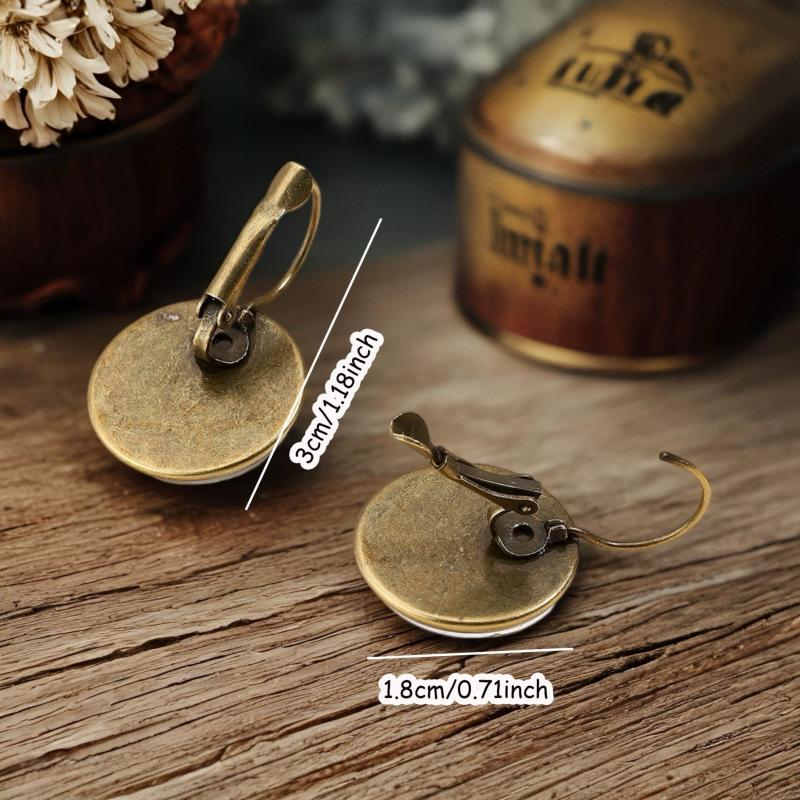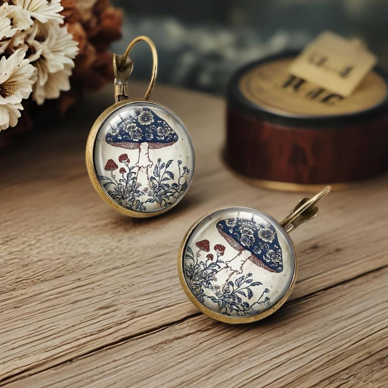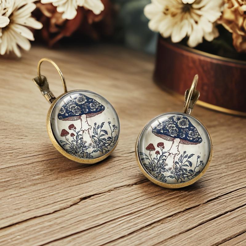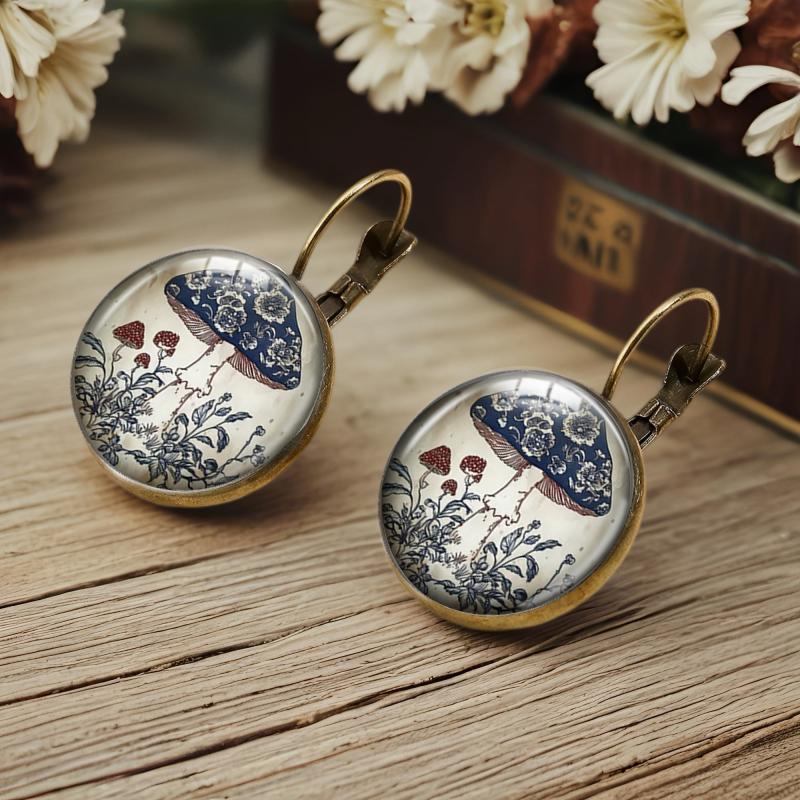 Add a touch of whimsy to your holiday outfit with these vintage Bohemian mushroom earrings. The golden-tone circular studs feature intricate floral art, perfect for adding a nature-inspired touch to your casual attire.