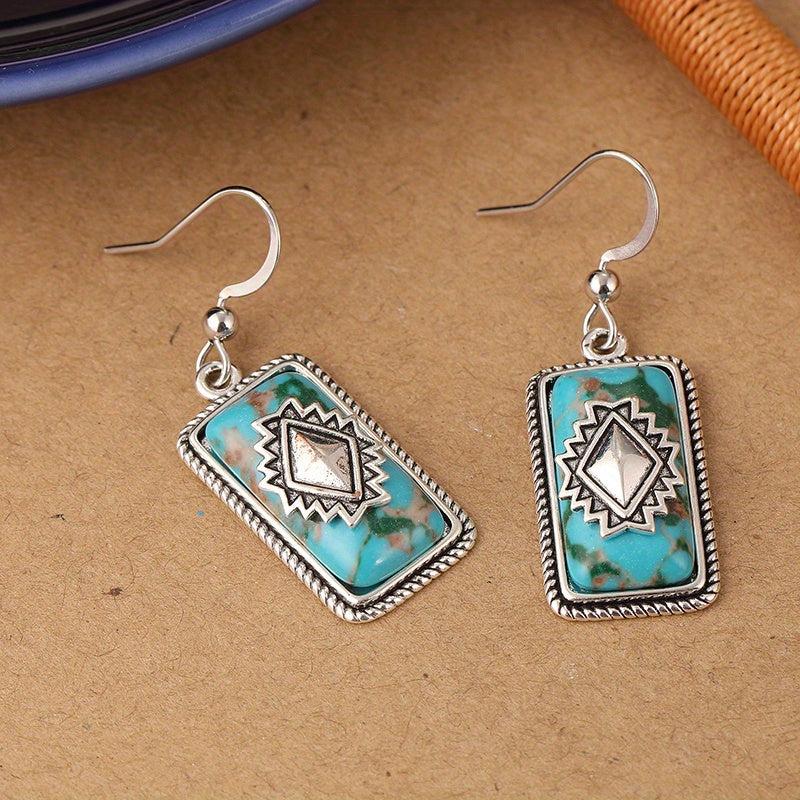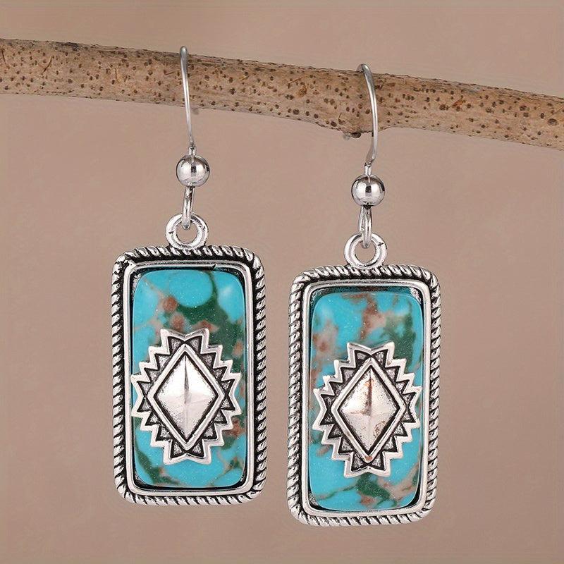 These ethnic style earrings feature turquoise dangles with synthetic gems in a copper & 925 silver plated setting. Perfect for parties, engagements, and daily wear.