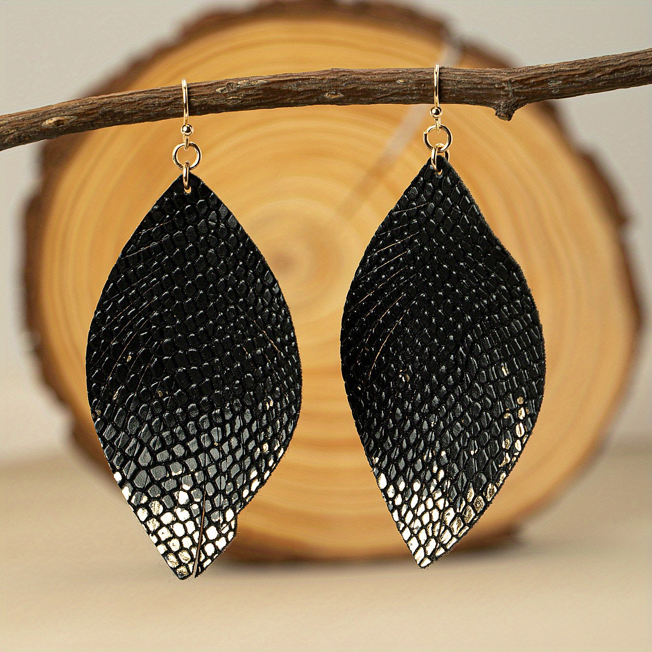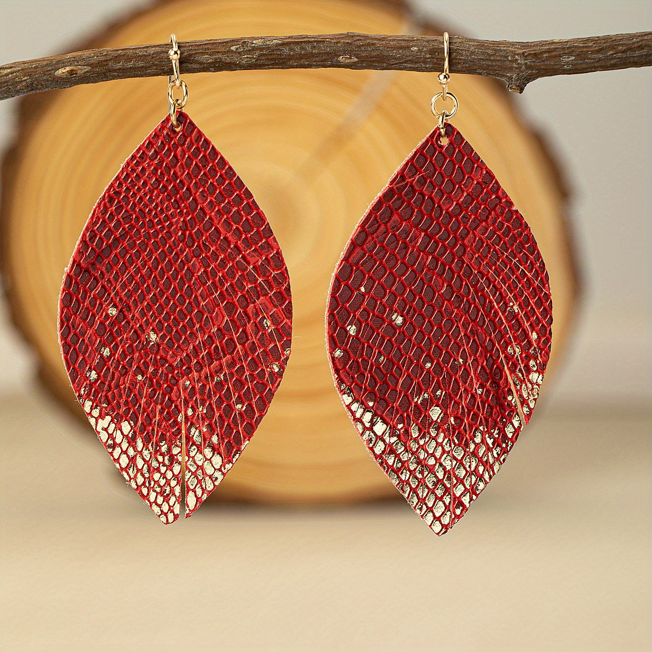 These vintage boho leaf dangle earrings are a stylish addition to any outfit. Made from PU leather, these minimalist style earrings are delicate and perfect for women and girls. They also make a great gift.