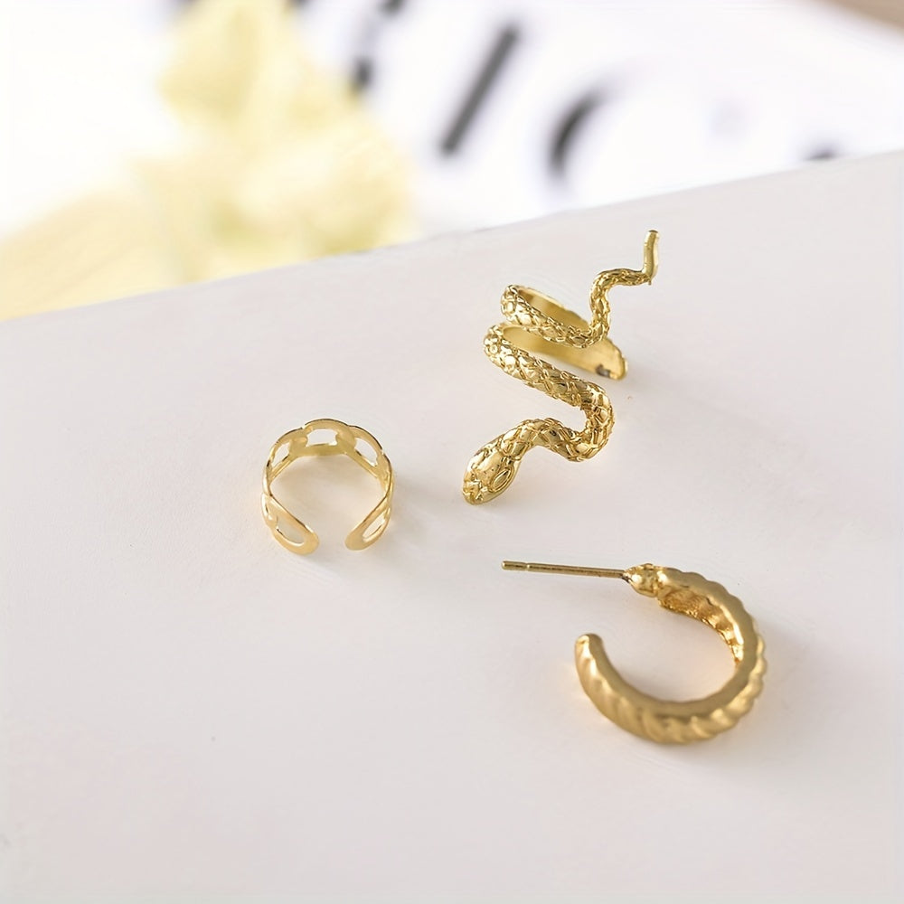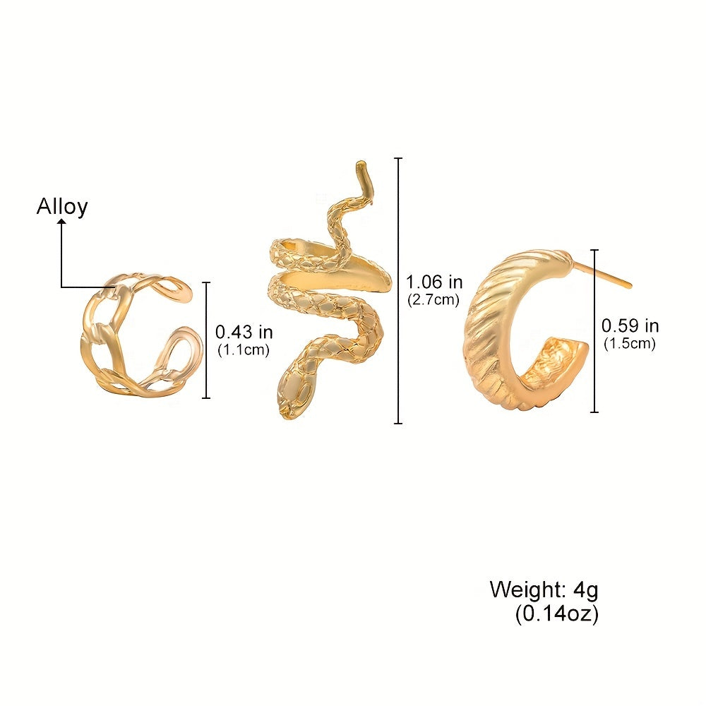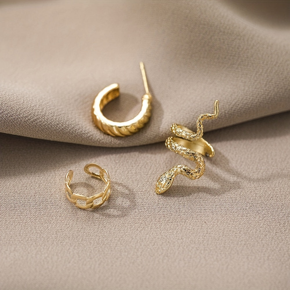 Add a touch of vintage charm with these chain snake ear clip earrings set, ideal for women and girls.