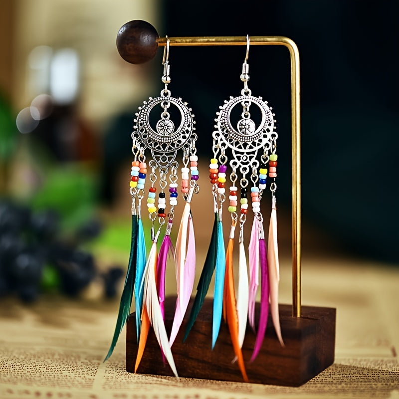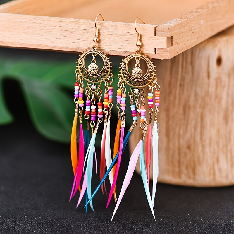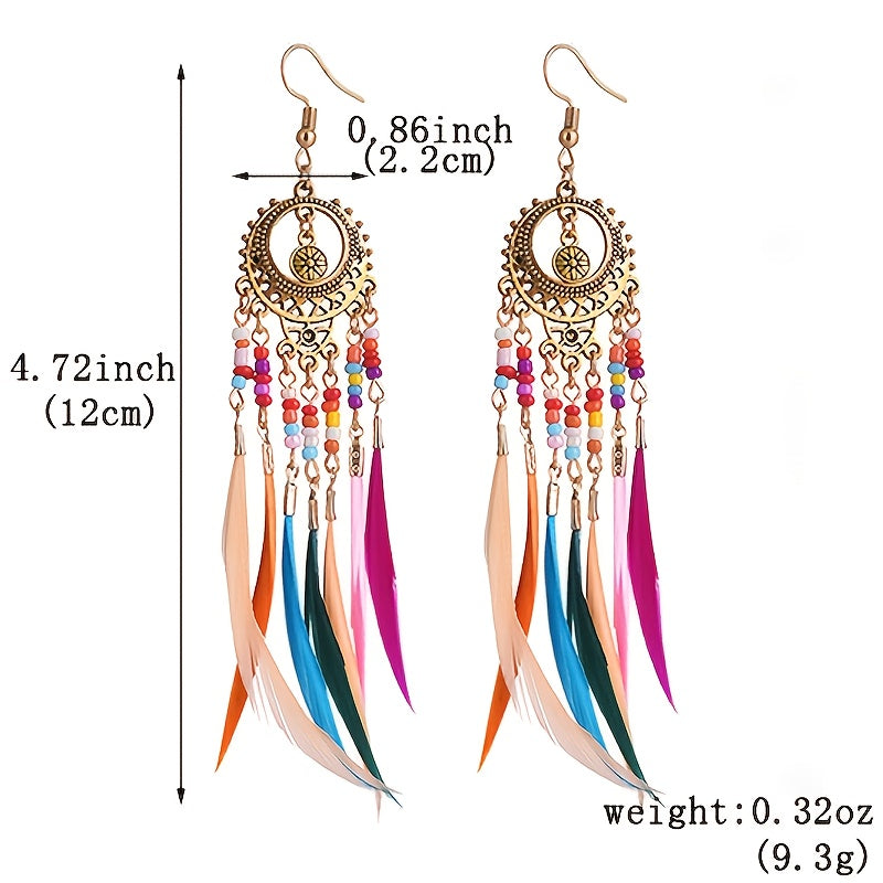 Add a touch of vintage charm to your look with these cut out long leg fluffy earrings featuring 7 tone beaded tassels. Perfect for adding a pop of color and movement to your outfit.